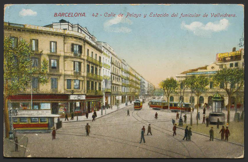 BARCELONA. Calle de Pelayo y Estación del funicular de Valvidriera.