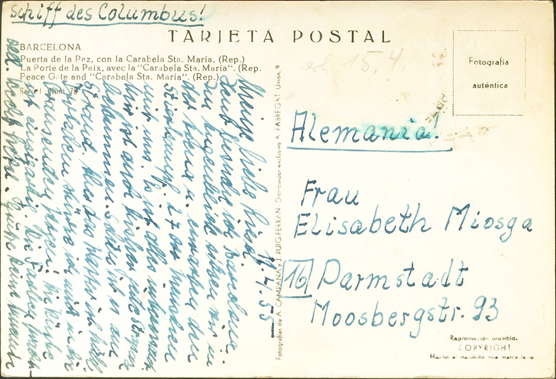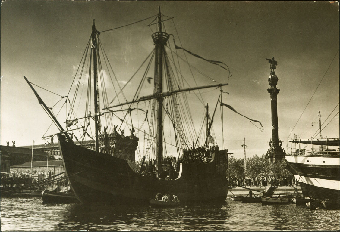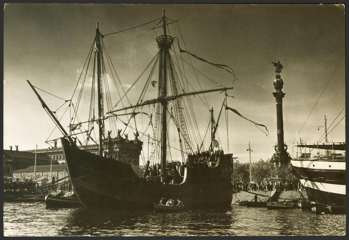 BARCELONA. Puerta de la Paz con la Carabela Sta. MarÃa.