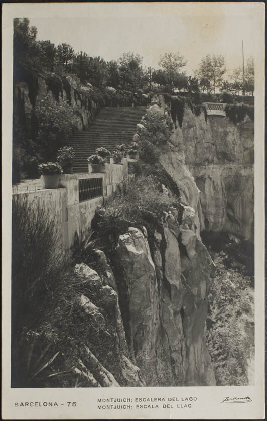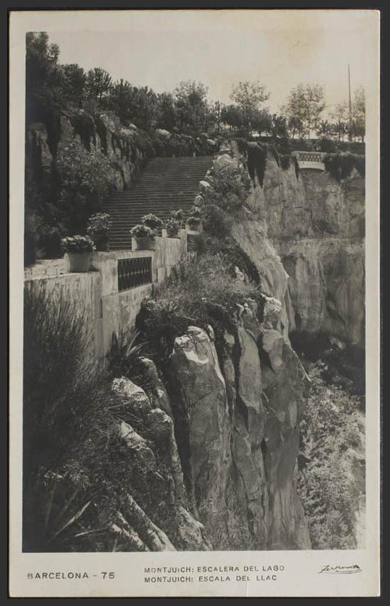 BARCELONA. Parque de Montjuich. Escalera del lago.