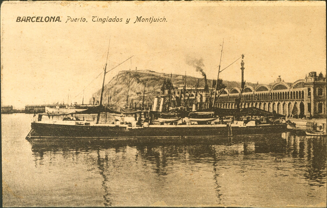 BARCELONA. Puerto. Tinglados y Montjuich.