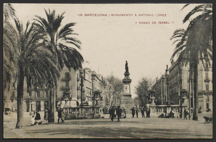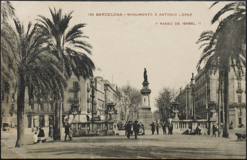BARCELONA. Monumento a Antonio López y Paseo Isabel II.