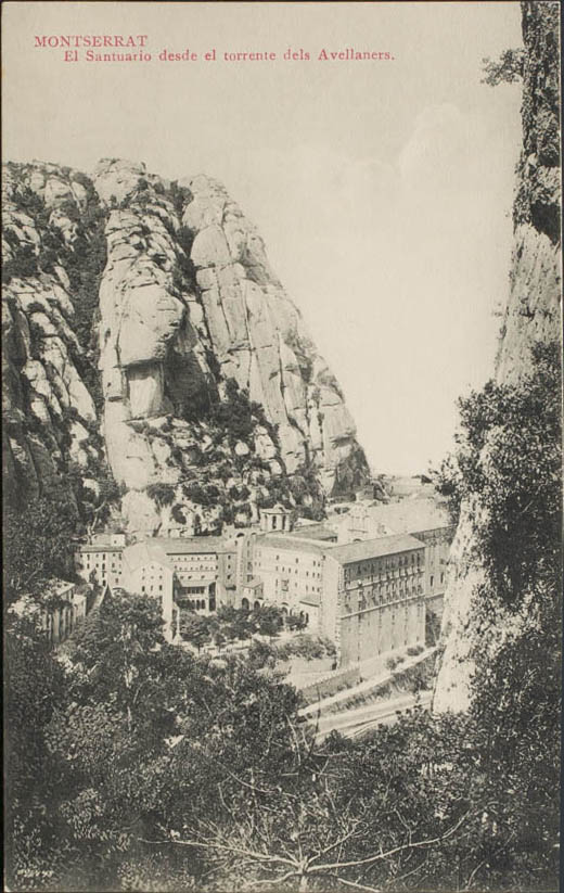 MONTSERRAT. El Santuario desde el torrente dels Avellaners.