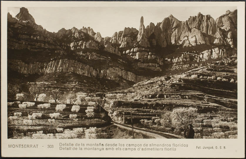 MONTSERRAT. Detalle de la montaña desde los campos de almendros floridos.