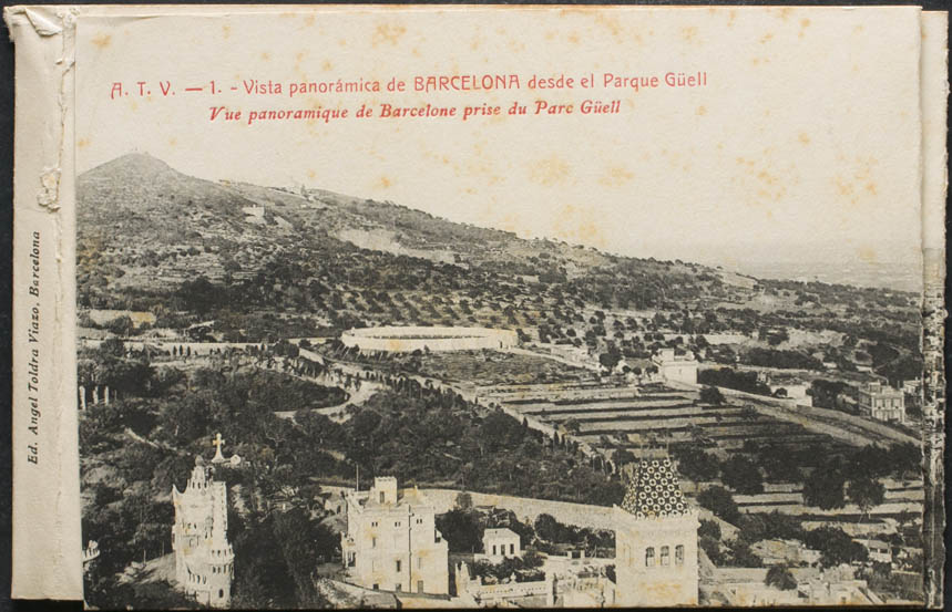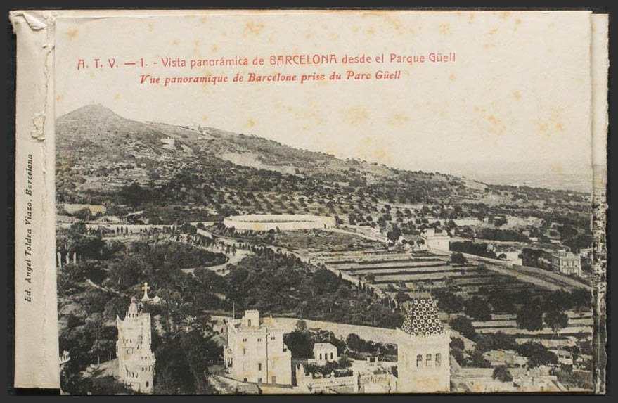BARCELONA. Vista panorámica desde el Parque Güell. Postal cuadruple.