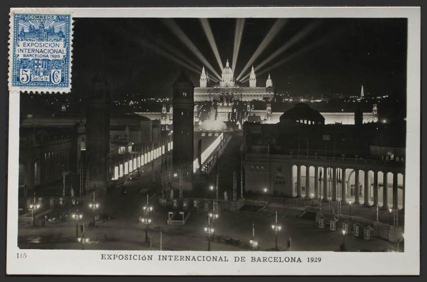 BARCELONA. Exposición Internacional de Barcelona. Entrada a la Exposición (nocturna).