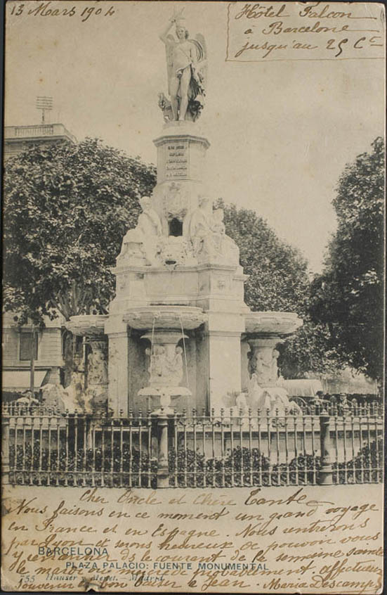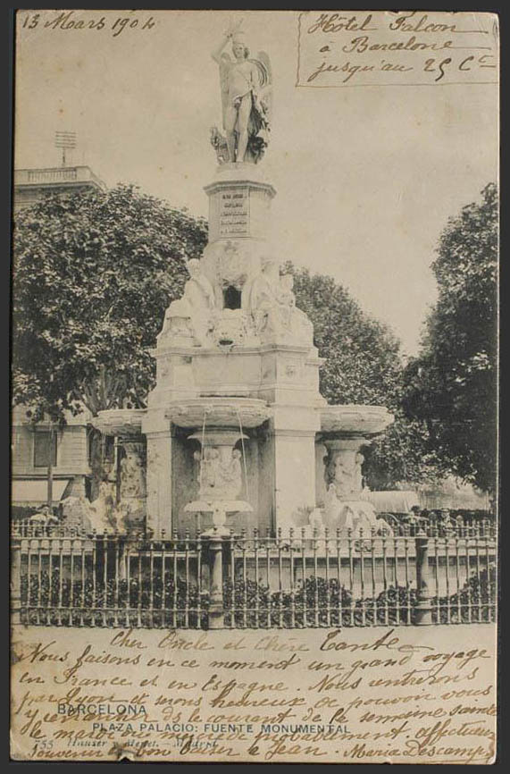 BARCELONA. Plaza Palacio. Fuente monumental. Hauser y Menet Nº755.