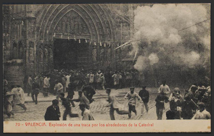 VALENCIA. Explosión de una traca por los alrededores de la Catedral.