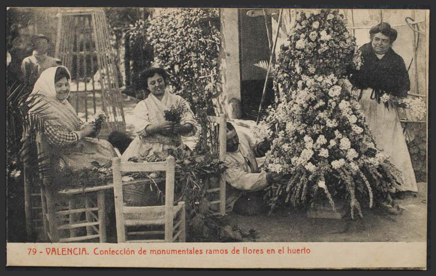 VALENCIA. Confección de monumentales ramos de flores en el huerto.