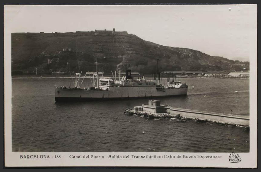 BARCELONA. Canal del Puerto. Salida del Transatlántico "Cabo de Buena Esperanza".