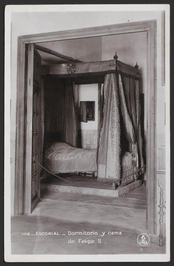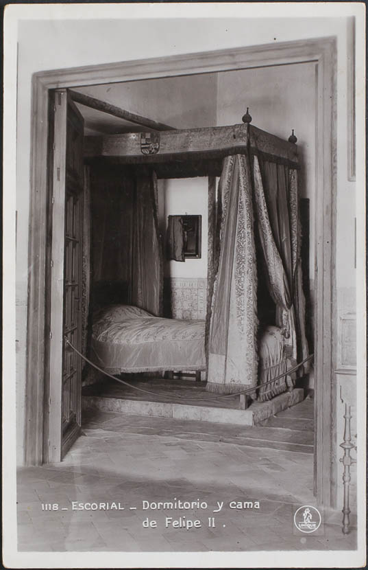 SAN LORENZO DEL ESCORIAL. Monasterio. Dormitorio y cama de Felipe II.