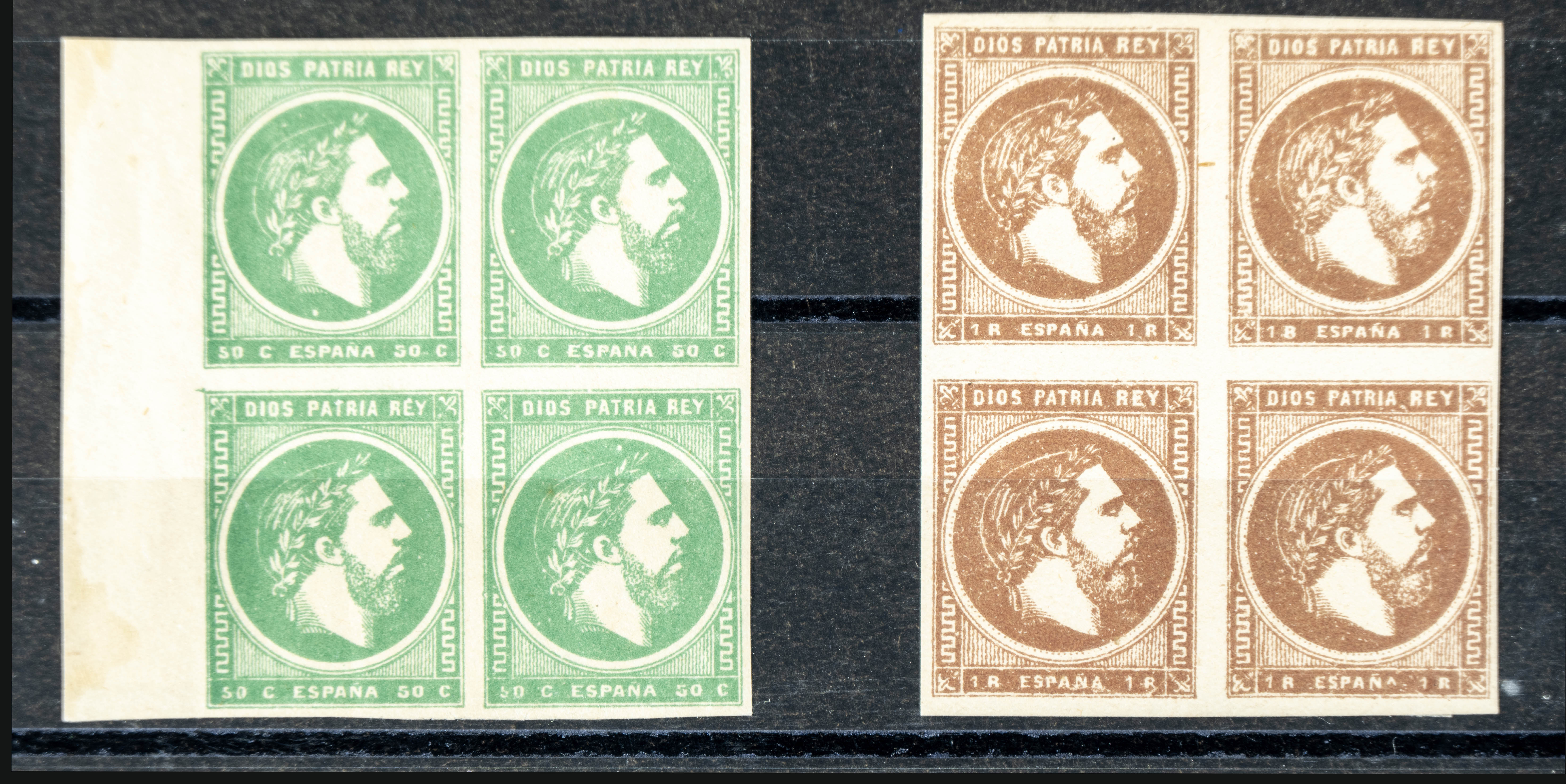 ★ 160/61(4). 1875. Serie completa, bloque de cuatro. MAGNIFICO. Edifil 2014: 200 Euros