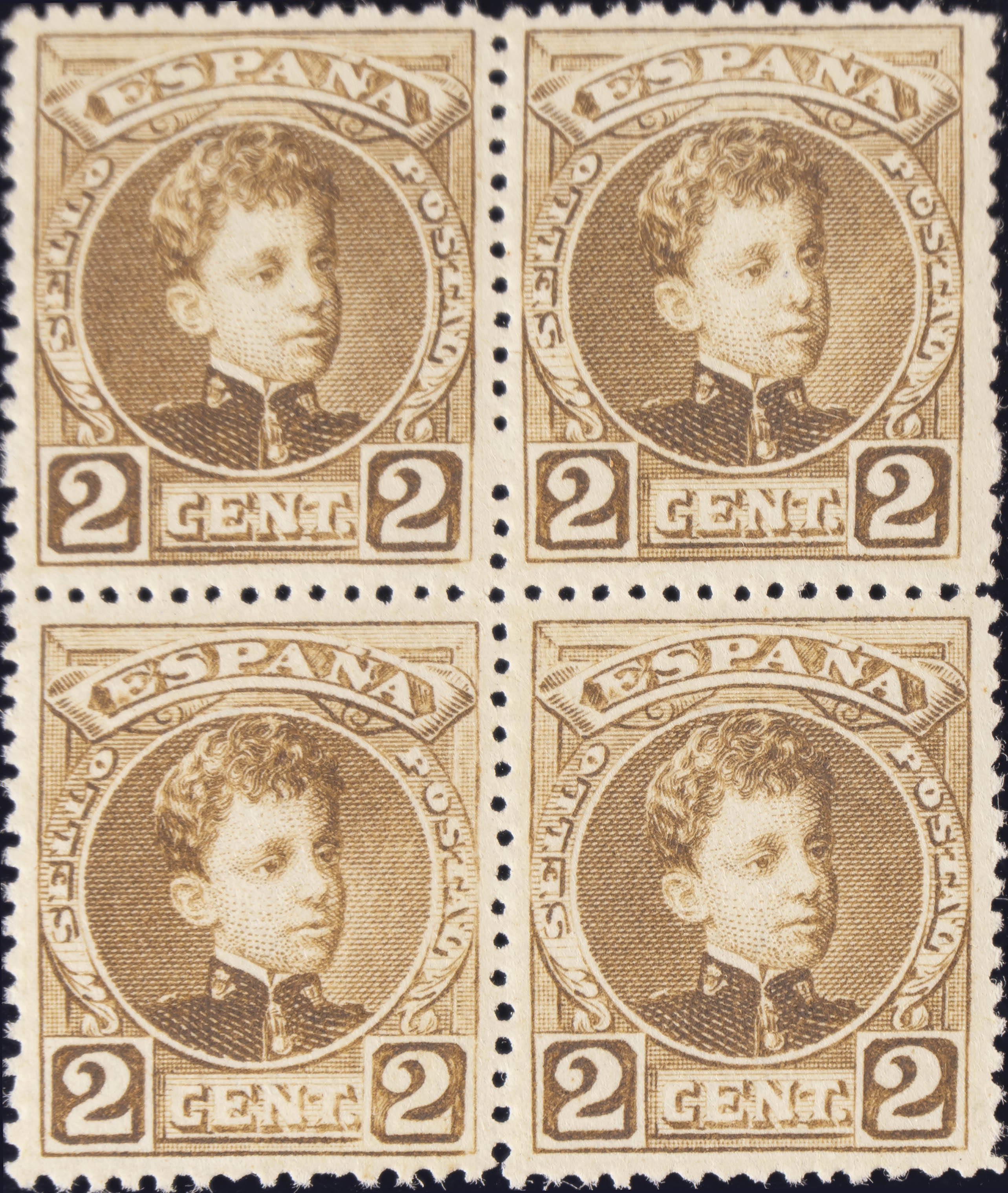 ★★ 241(4). 1901. 2 cts castaño, bloque de cuatro. MAGNIFICO.