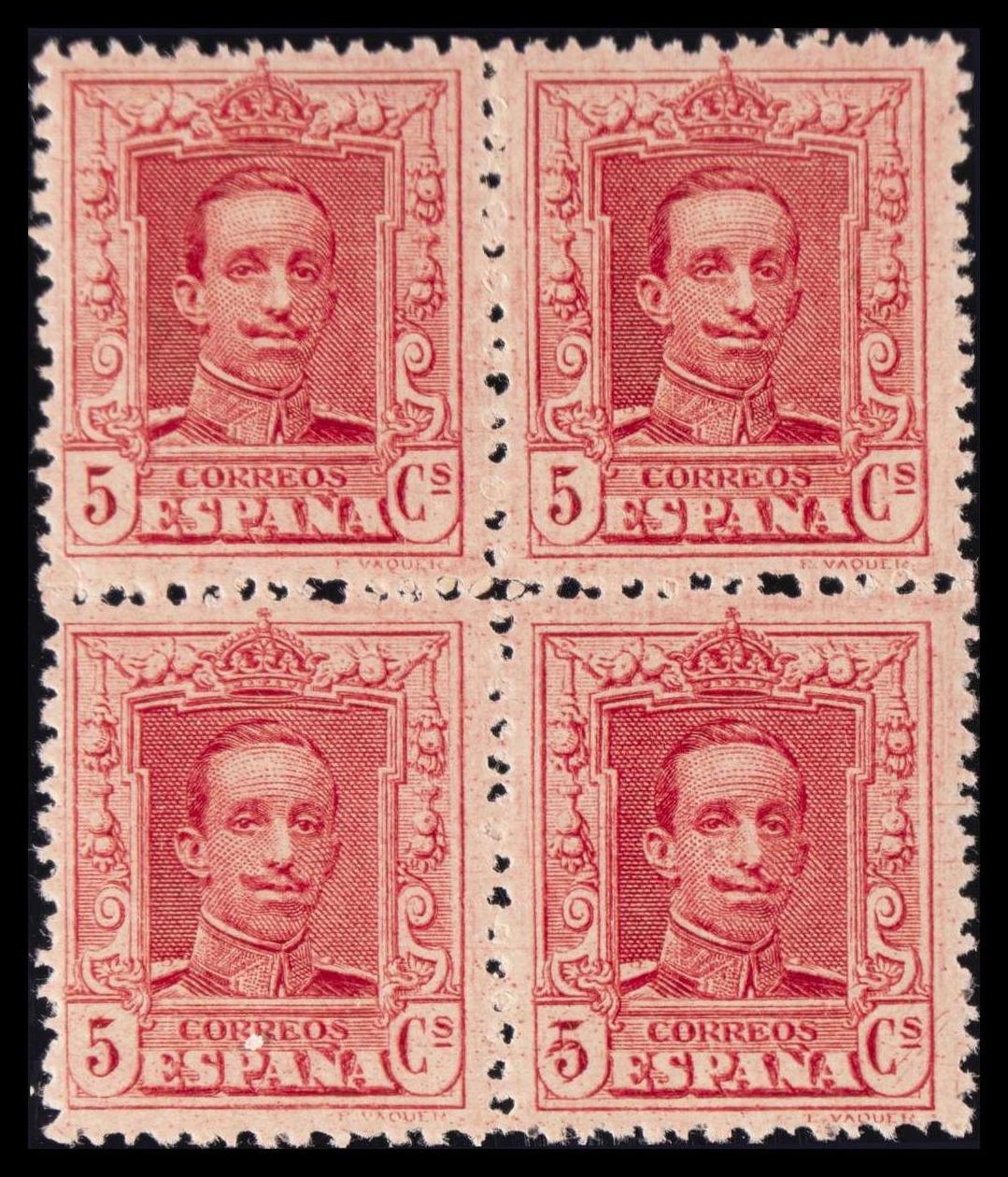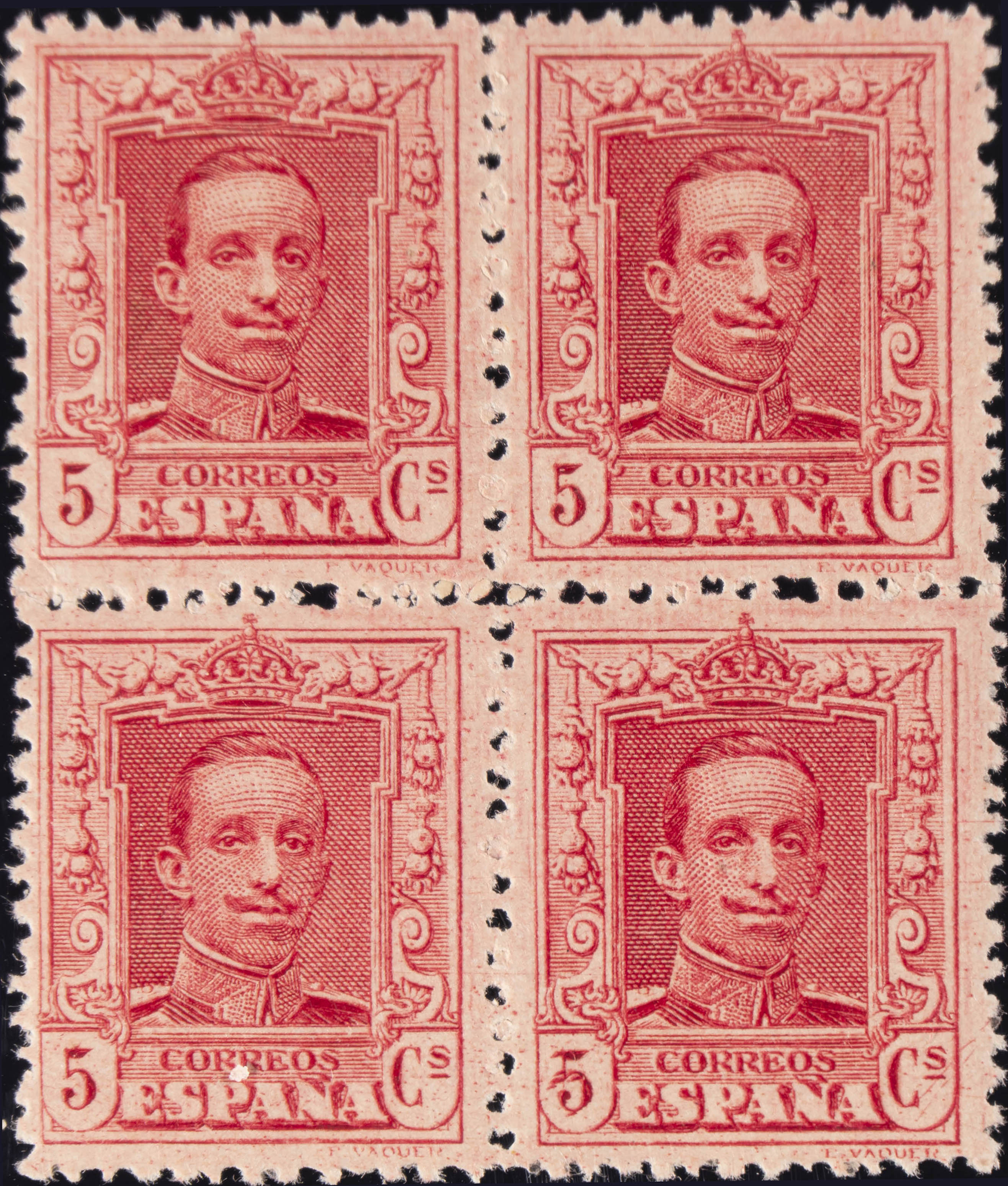 ★★ 312(4). 1922. 5 cts carmÃn, bloque de cuatro. MAGNIFICO. Edifil 2020: +24 Euros
