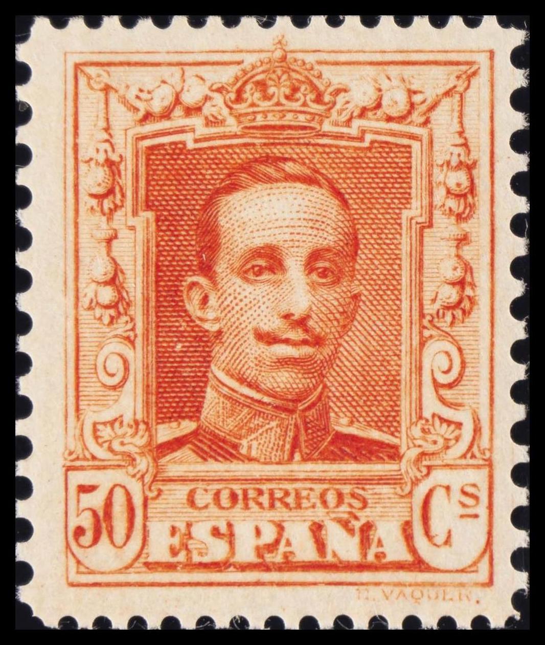 ★ 320df. 1922. 50 cts rojo naranja. DENTADO 14. MAGNIFICO. Edifil 2015: 17,5 Euros