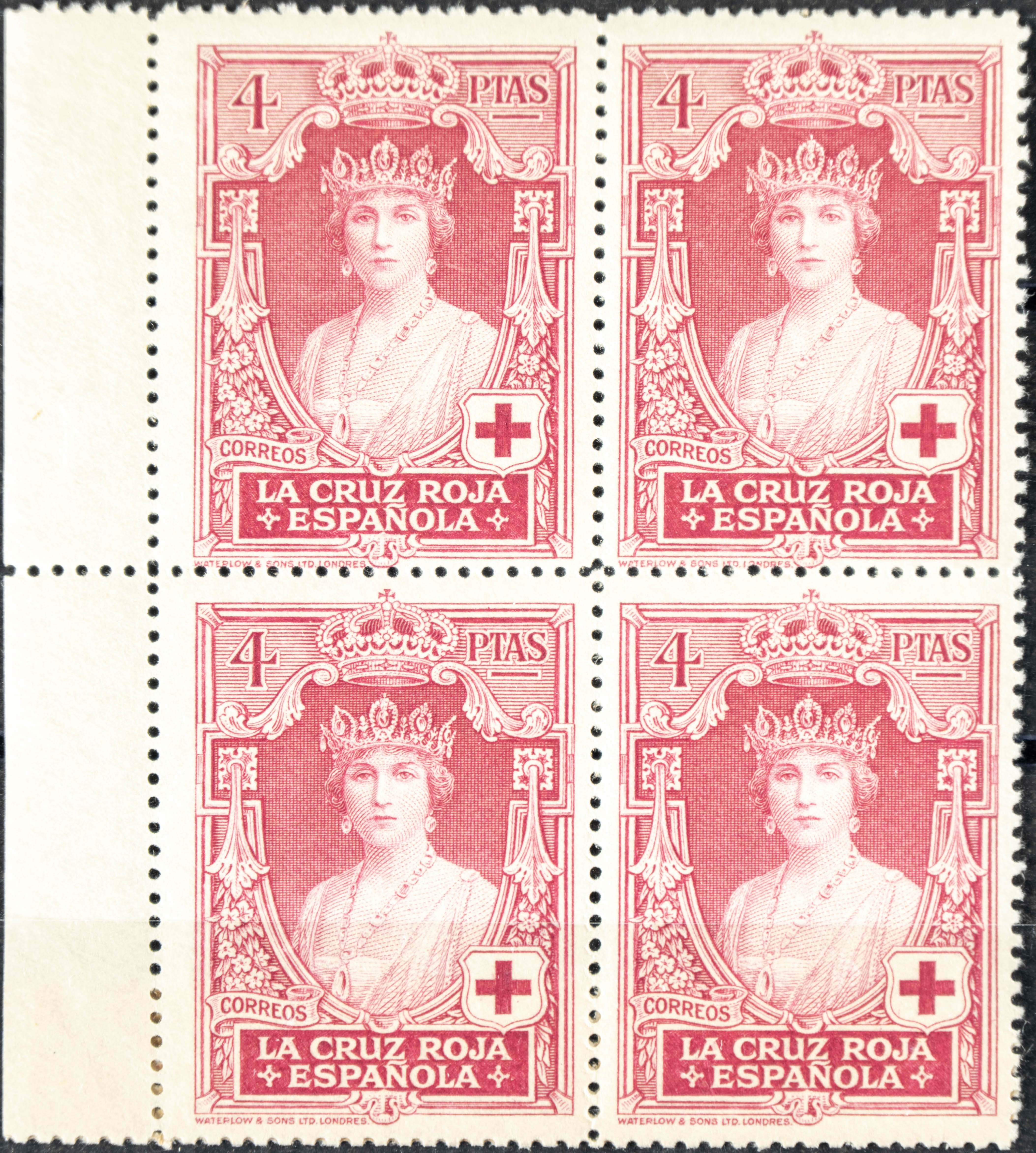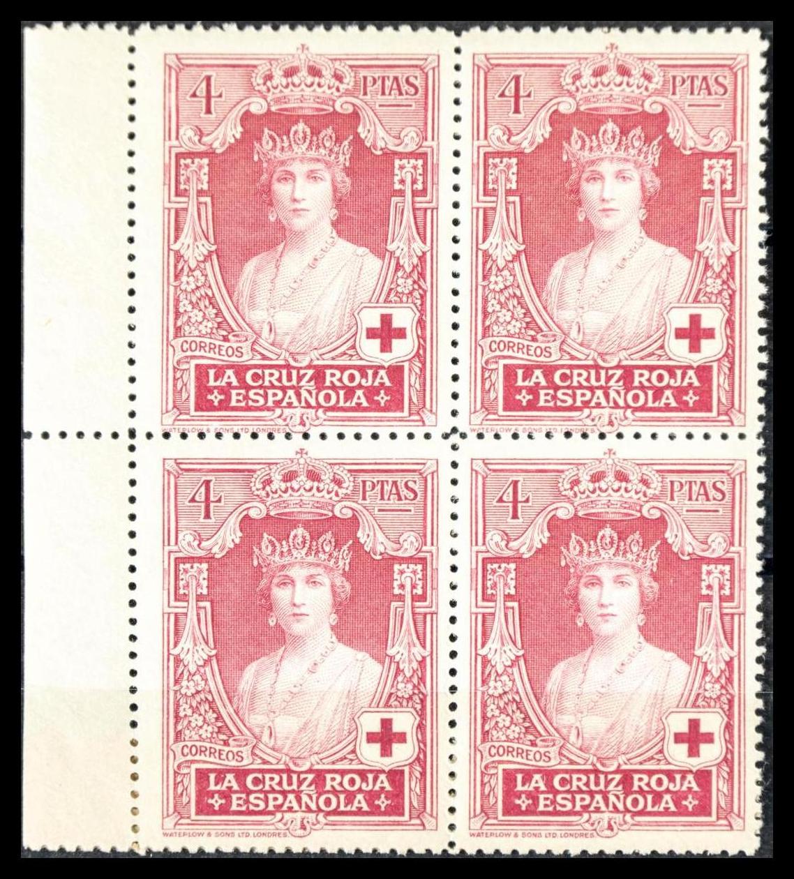 ★★ 336(4). 1926. 4 pts carmÃn rosa, bloque de cuatro. MAGNIFICO. Edifil 2020: +44 Euros
