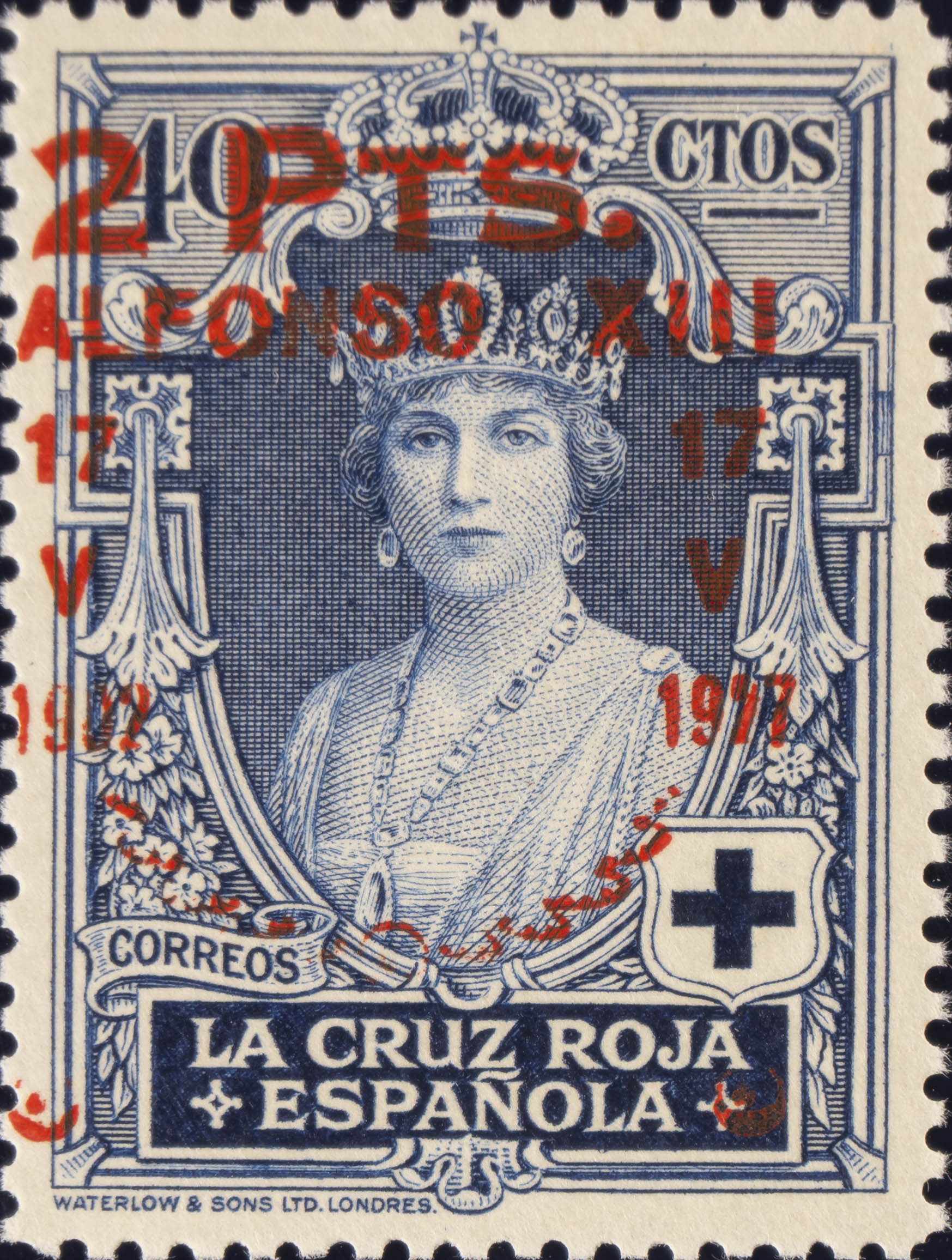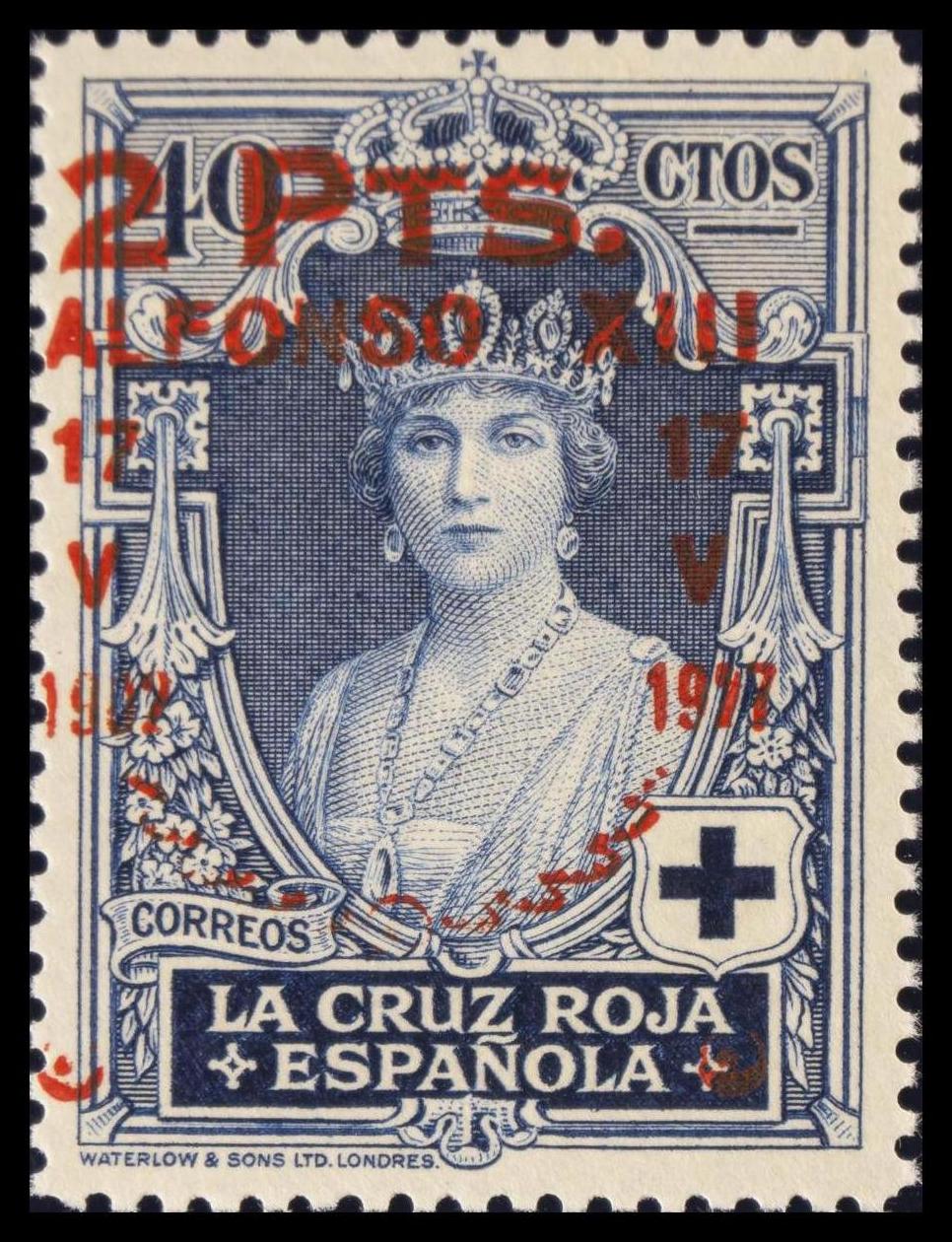 ★★ 383hd. 1927. 2 pts sobre 40 cts azul. Variedad SOBRECARGA DESPLAZADA. MAGNIFICO. Edifil 2015: 176 Euros