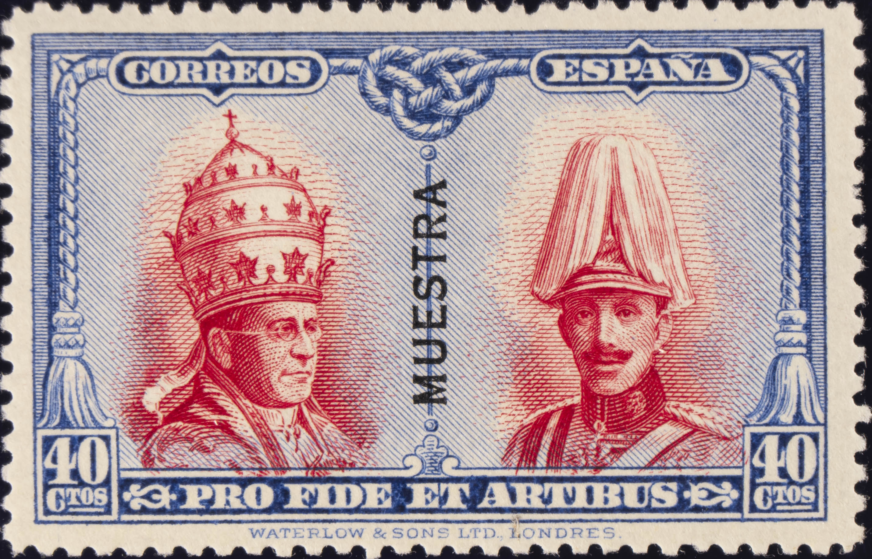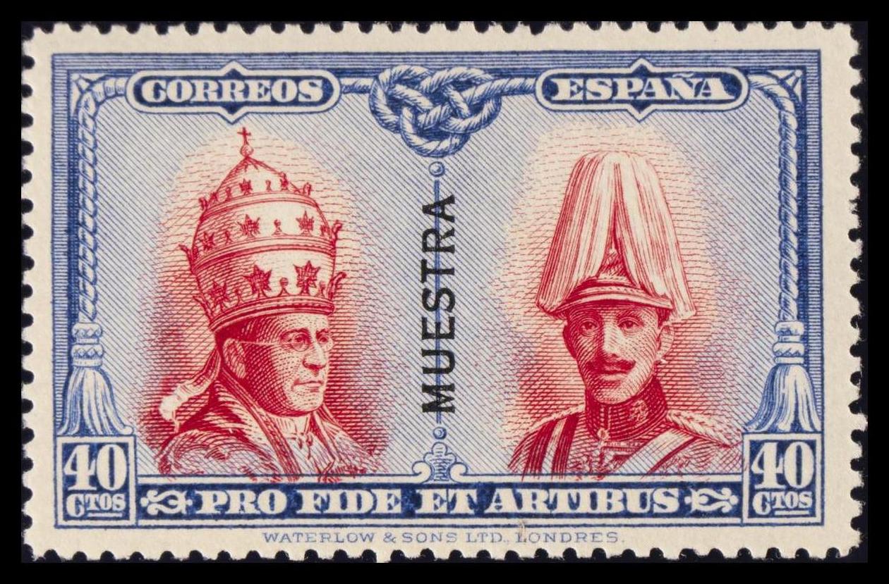 ★ 410M. 1928. 40 cts azul y carmÃn. MUESTRA. MAGNIFICO. Edifil 2015: 7 Euros