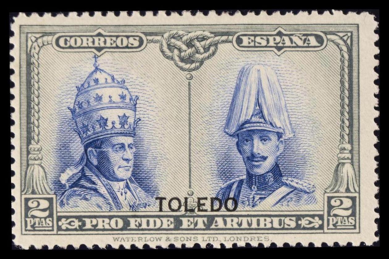 ★ 414H. 1928. 2 pts gris y azul. Sobrecarga TOLEDO. MAGNIFICO. Edifil 2015: 25,5 Euros