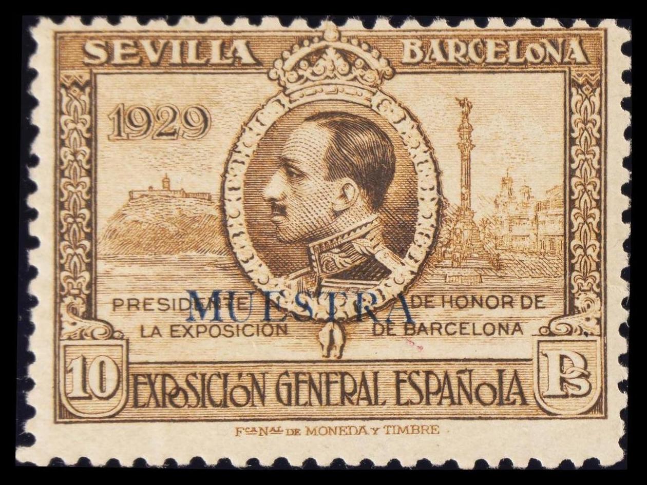 ★ 446Ma. 1929. 10 pts castaño (centraje de la emisión). MUESTRA. BONITO. Edifil 2015: 37 Euros
