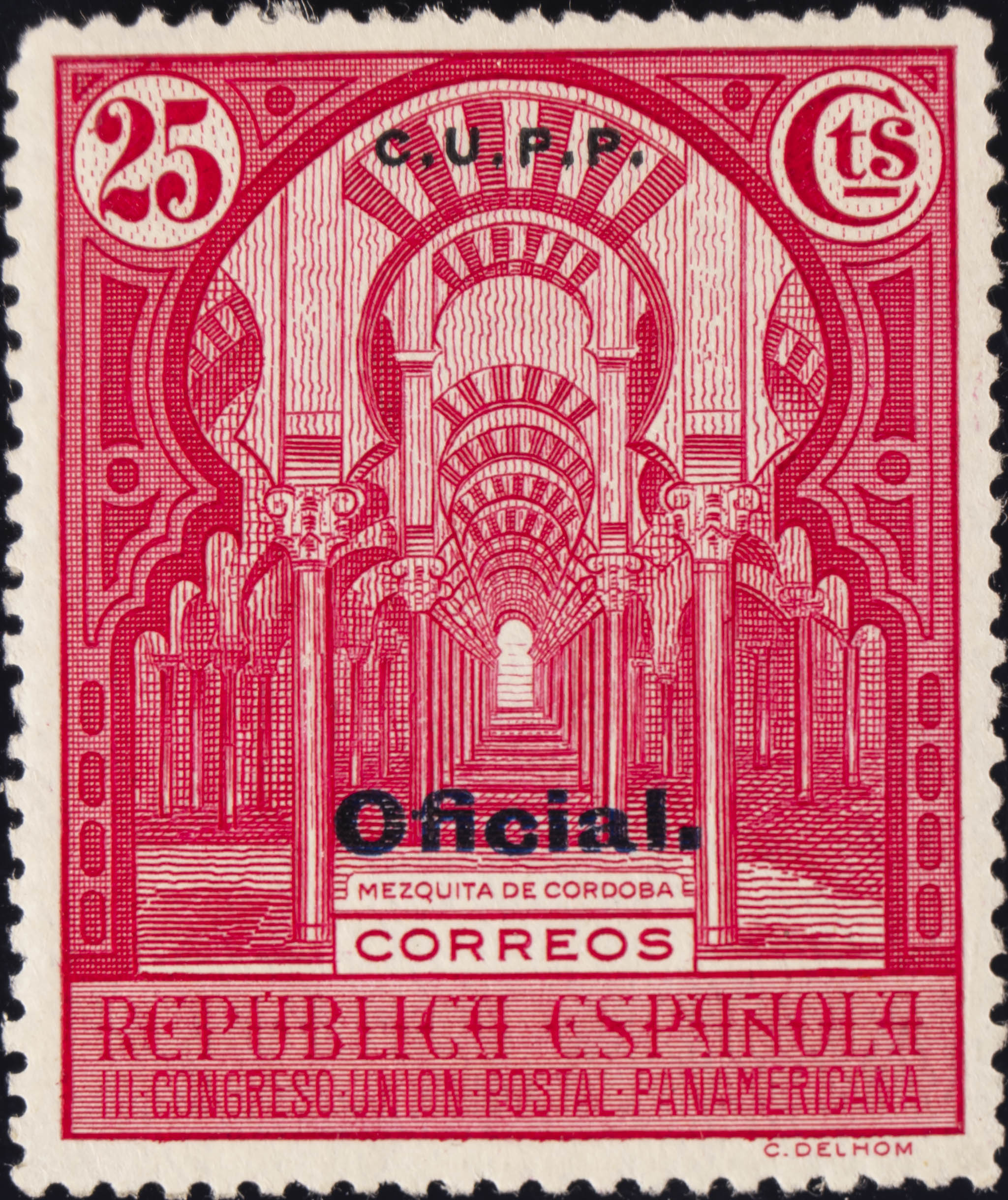 ★ 623H. 1931. 25 cts carmÃn rosa. Sobrecarga C. U. P. P. MAGNIFICO. Edifil 2015: 22 Euros