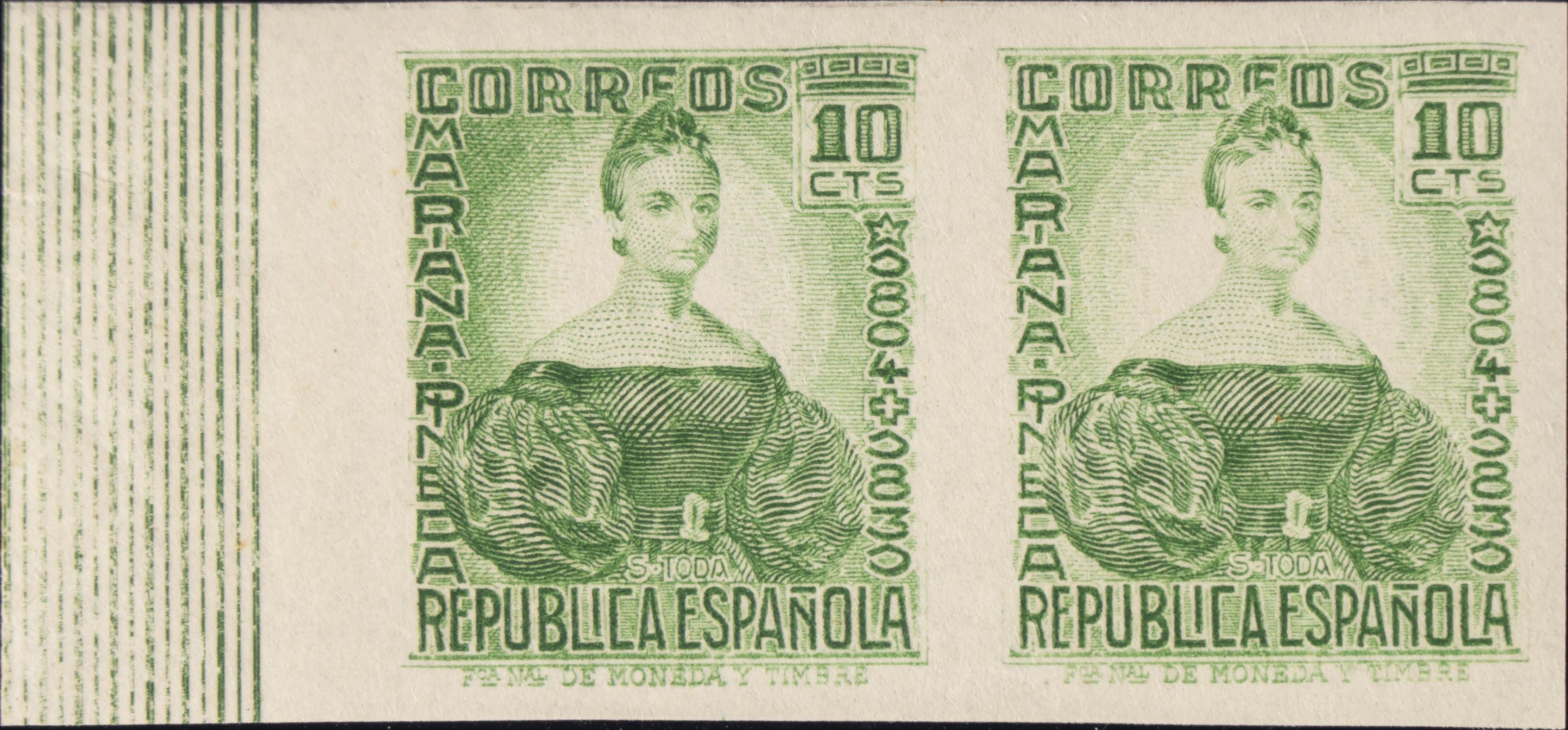 ★★ 682s(2). 1935. 10 cts verde, pareja. SIN DENTAR. MAGNIFICA. Edifil 2020: +6,6 Euros