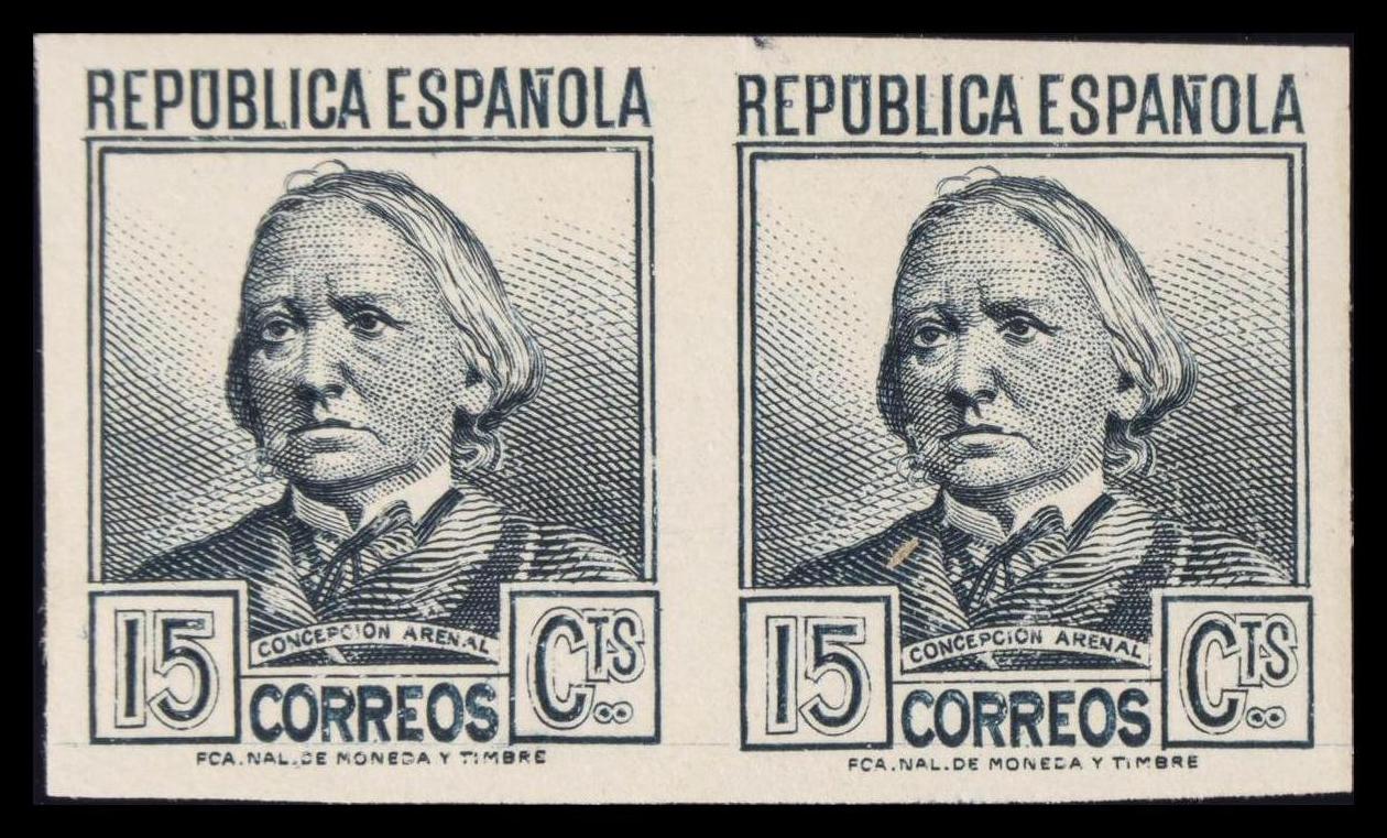 ★ 683s(2). 1935. 15 cts gris pizarra, pareja. SIN DENTAR. MAGNIFICA. Edifil 2020: +22 Euros
