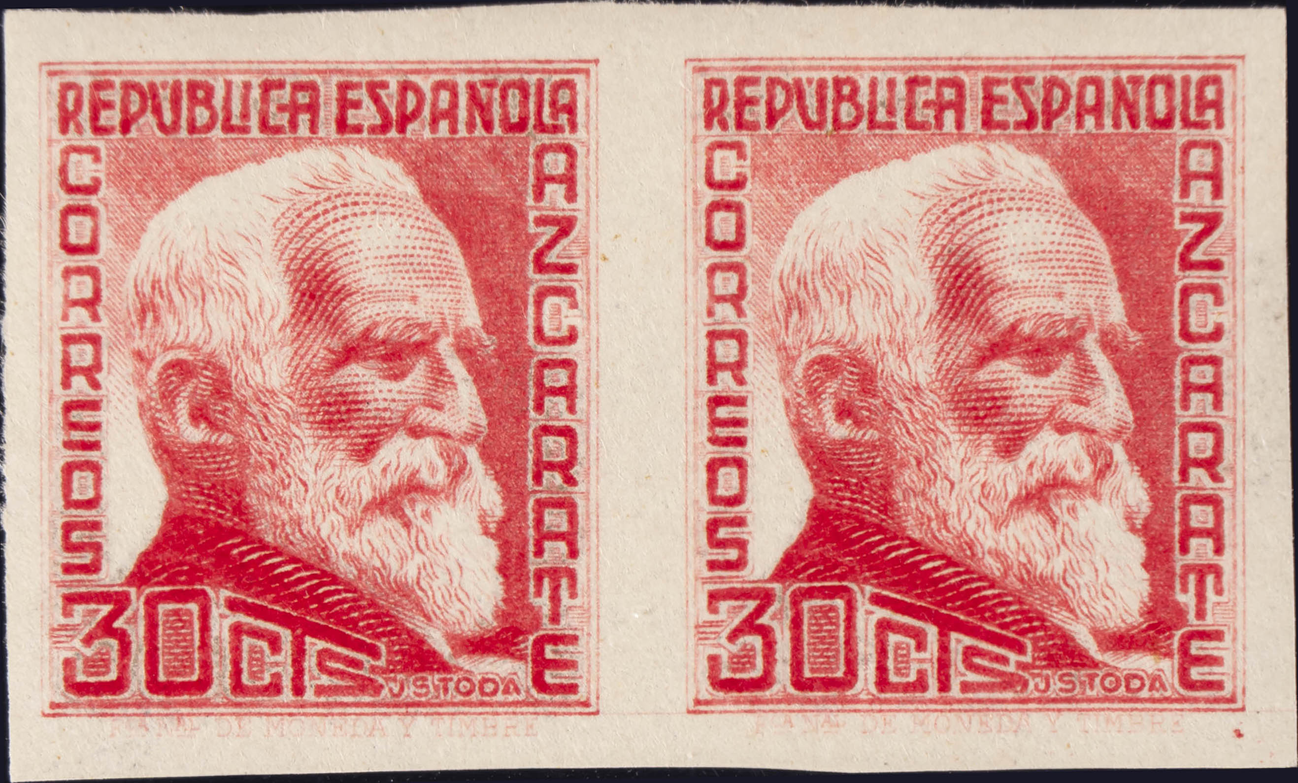 ★ 686s(2). 1935. 30 cts rosa, pareja. SIN DENTAR. MAGNIFICA. Edifil 2020: +108 Euros