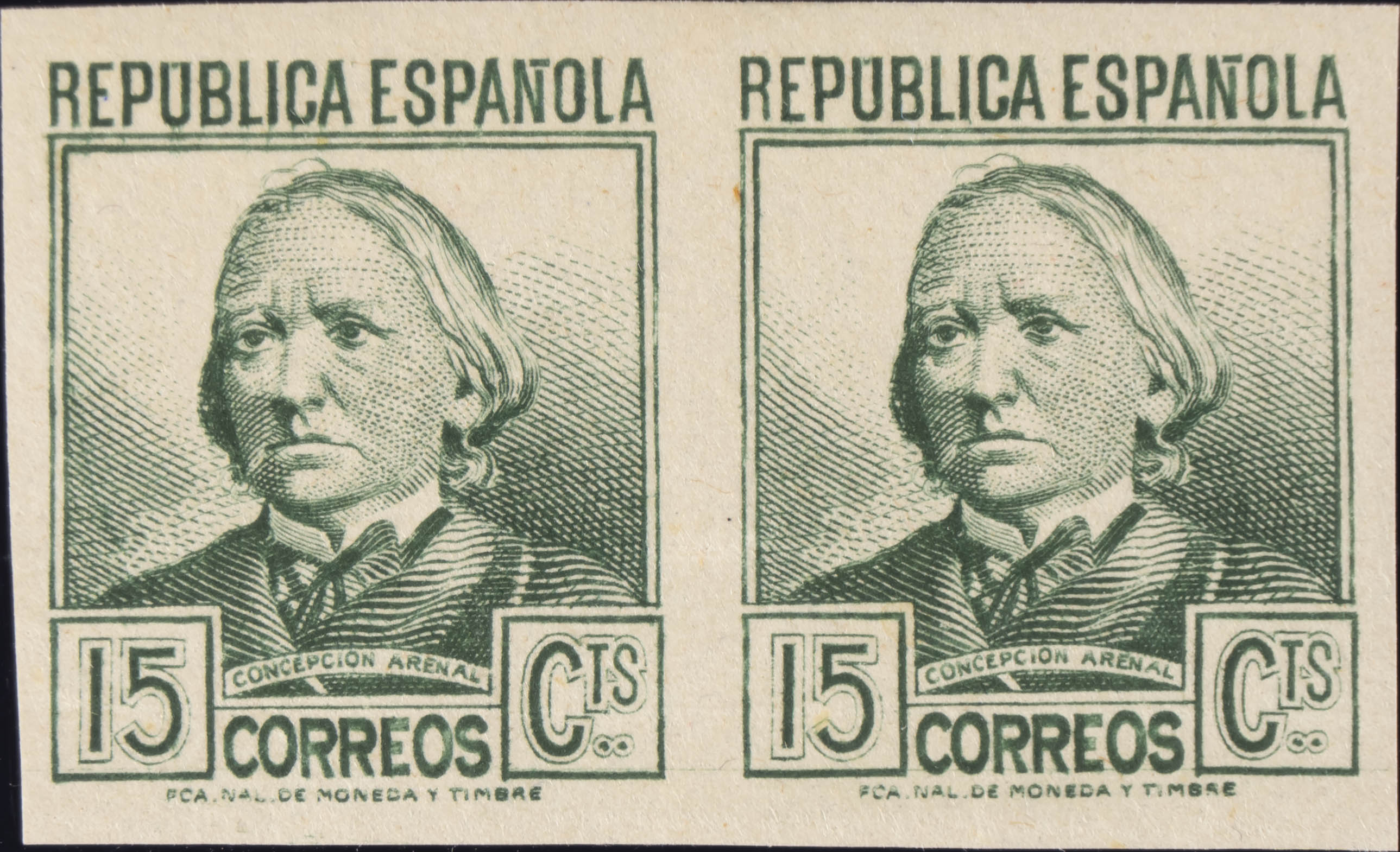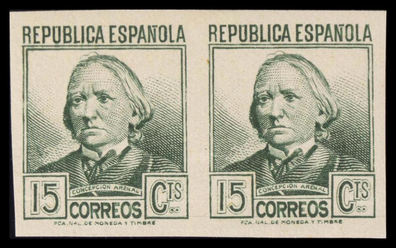 ★★ 733s(2). 1936. 15 cts verde amarillo, pareja. SIN DENTAR. MAGNIFICA. Edifil 2020: +53 Euros