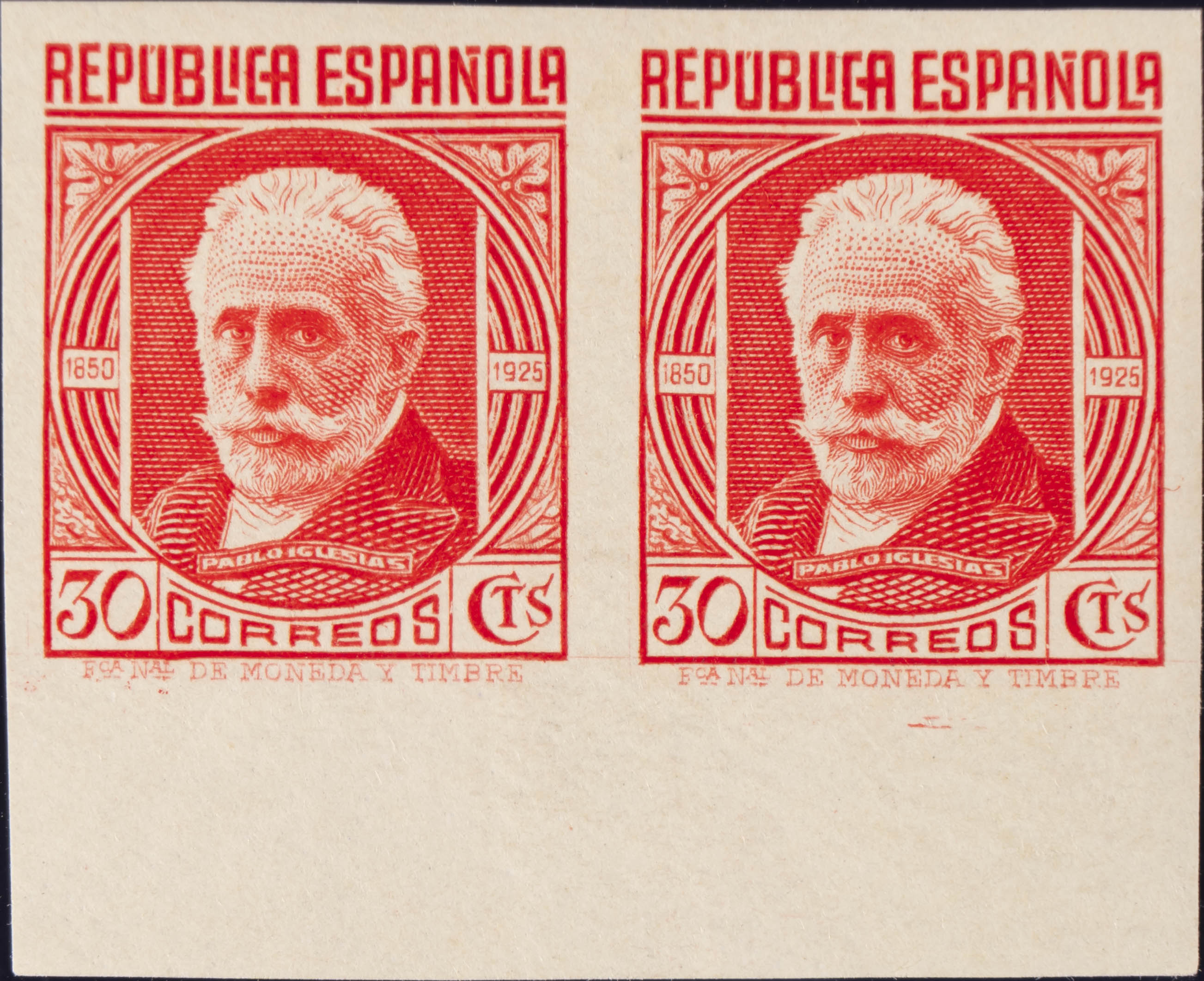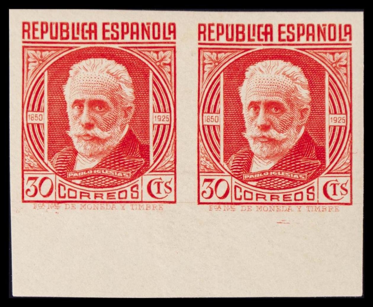★ 734s(2). 1936. 30 cts rojo, pareja. SIN DENTAR. MAGNIFICA. Edifil 2020: +29 Euros