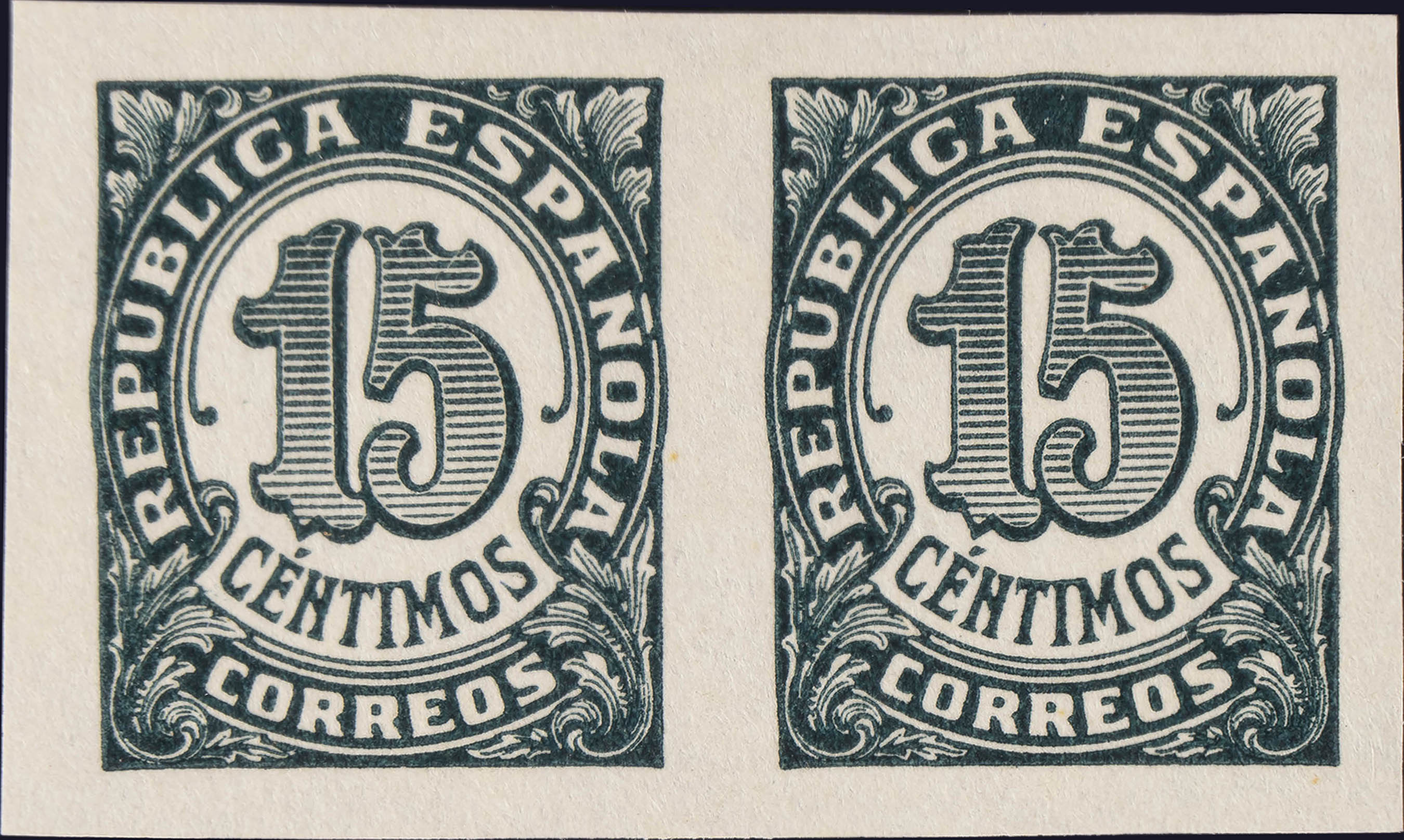 (★) 747s(2). 1938. 15 cts verde gris, pareja. SIN DENTAR. MAGNIFICA. Edifil 2020: +44 Euros