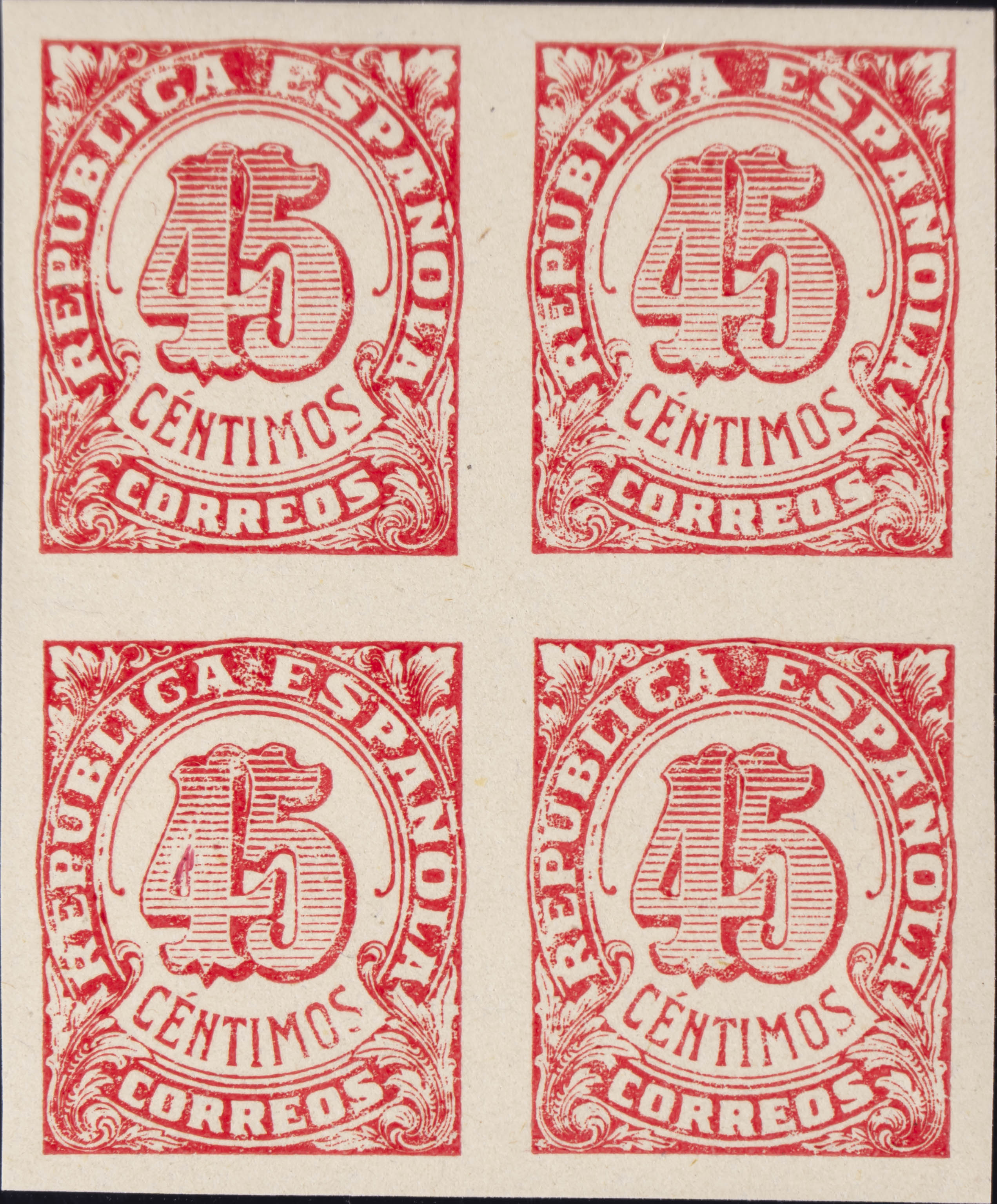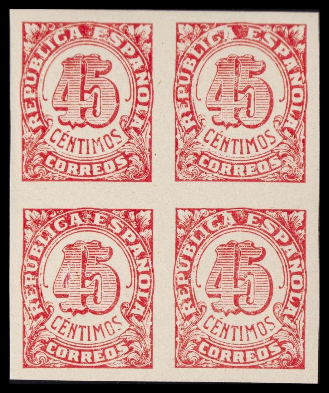 ★★ NE29s(4). 1938. 45 cts rosa, bloque de cuatro. NO EMITIDO y SIN DENTAR. MAGNIFICO. Edifil 2015: +480 Euros