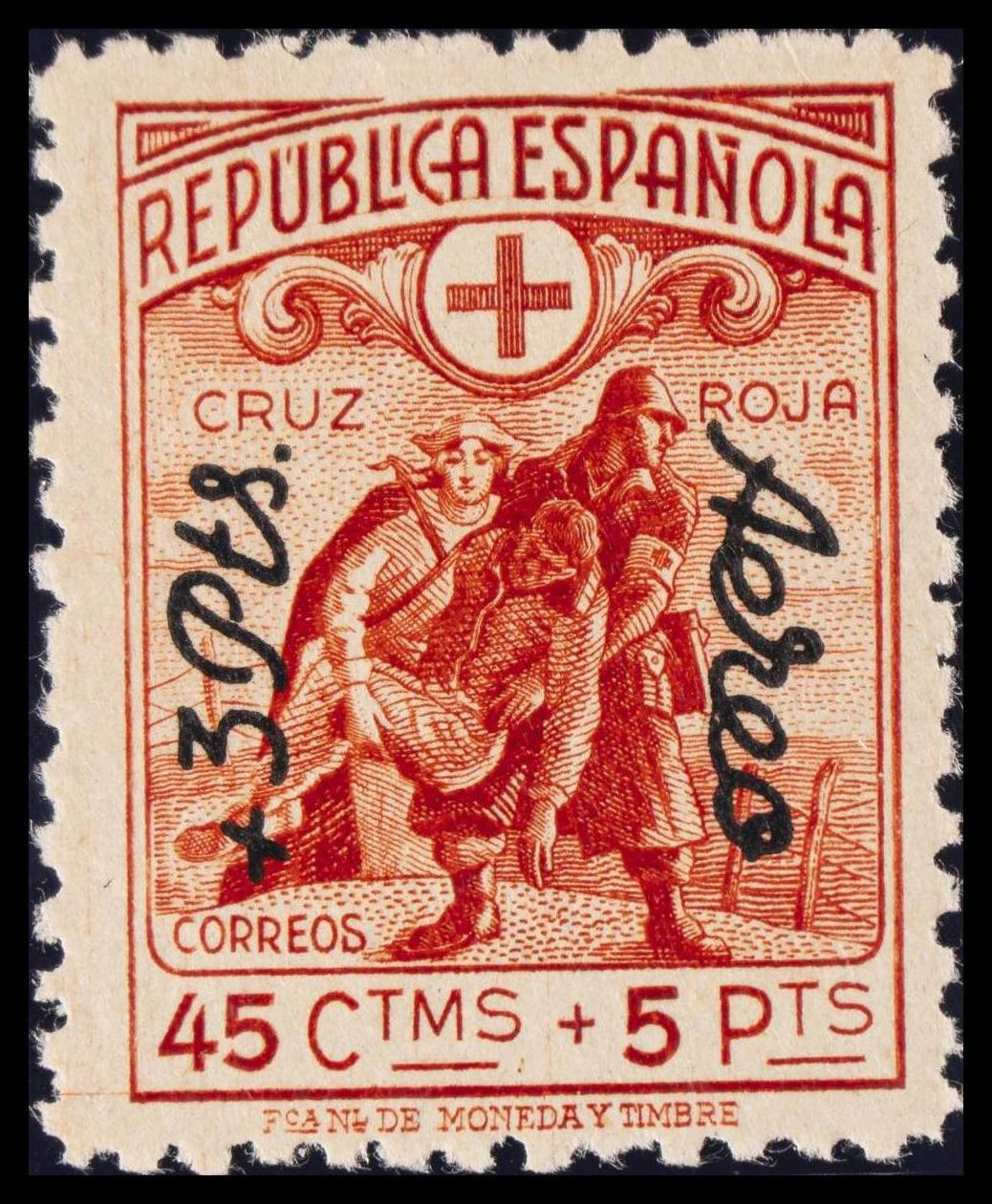 ★★ 768. 1938. 3 pts sobre 45 cts + 5 pts rojo. MAGNIFICO. Edifil 2020: 20 Euros