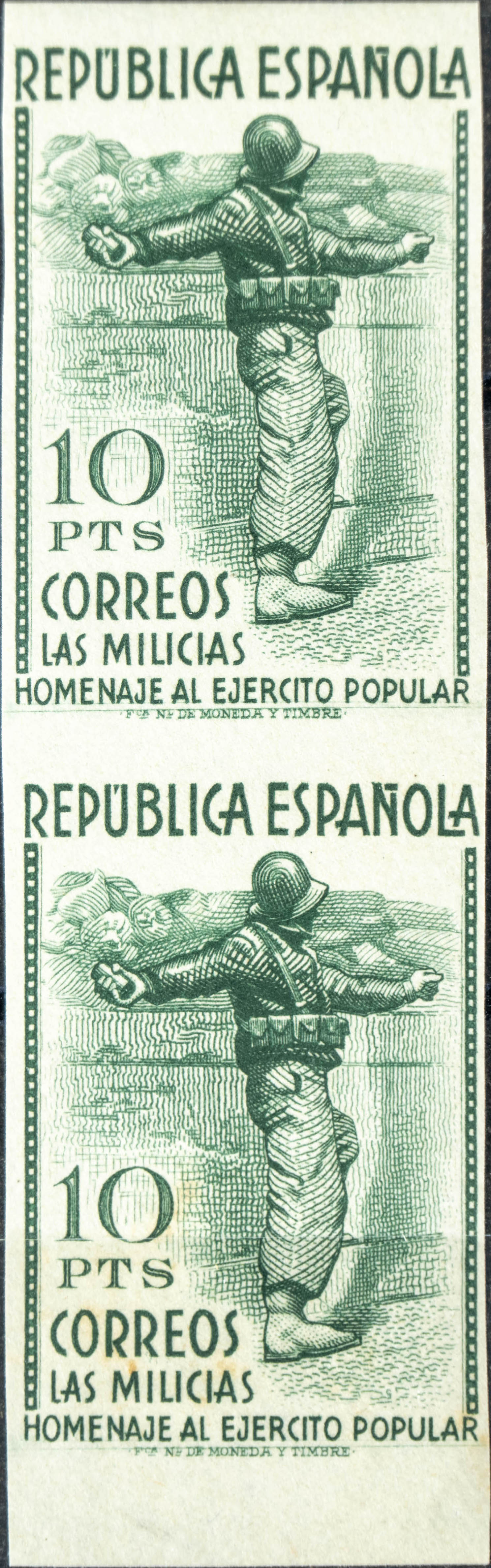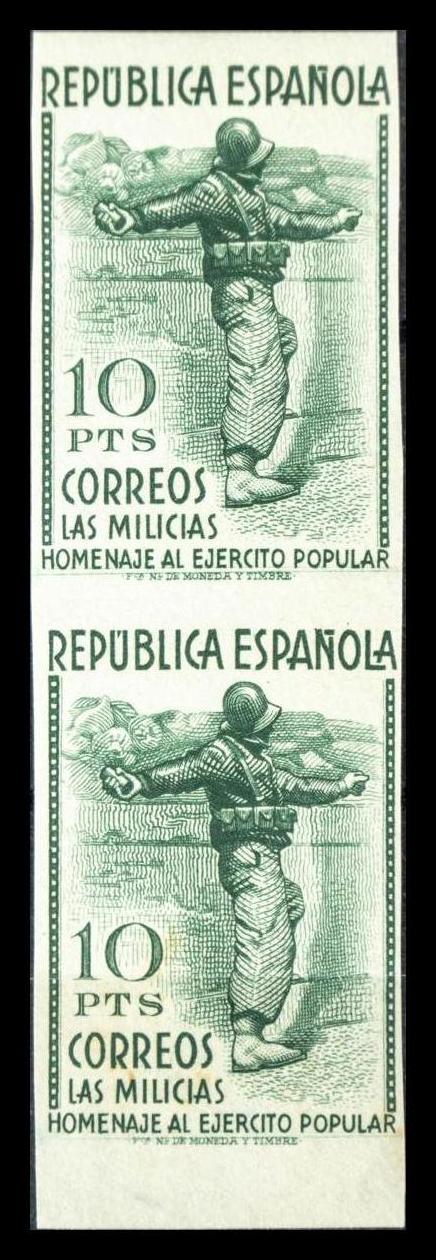 ★★ 800s(2). 1938. 10 pts verde, pareja. SIN DENTAR. MAGNIFICA. Edifil 2015: 1.100 Euros