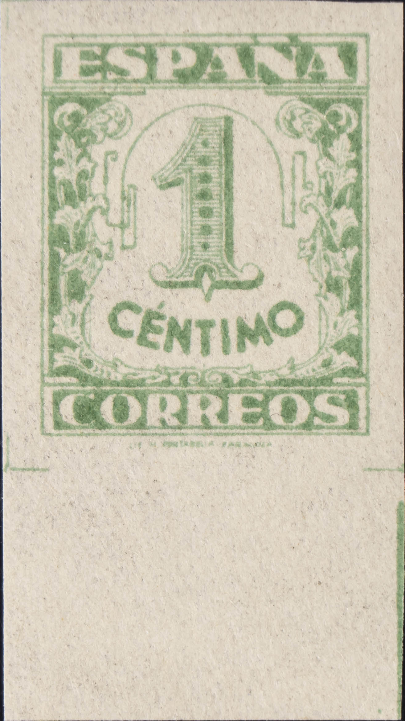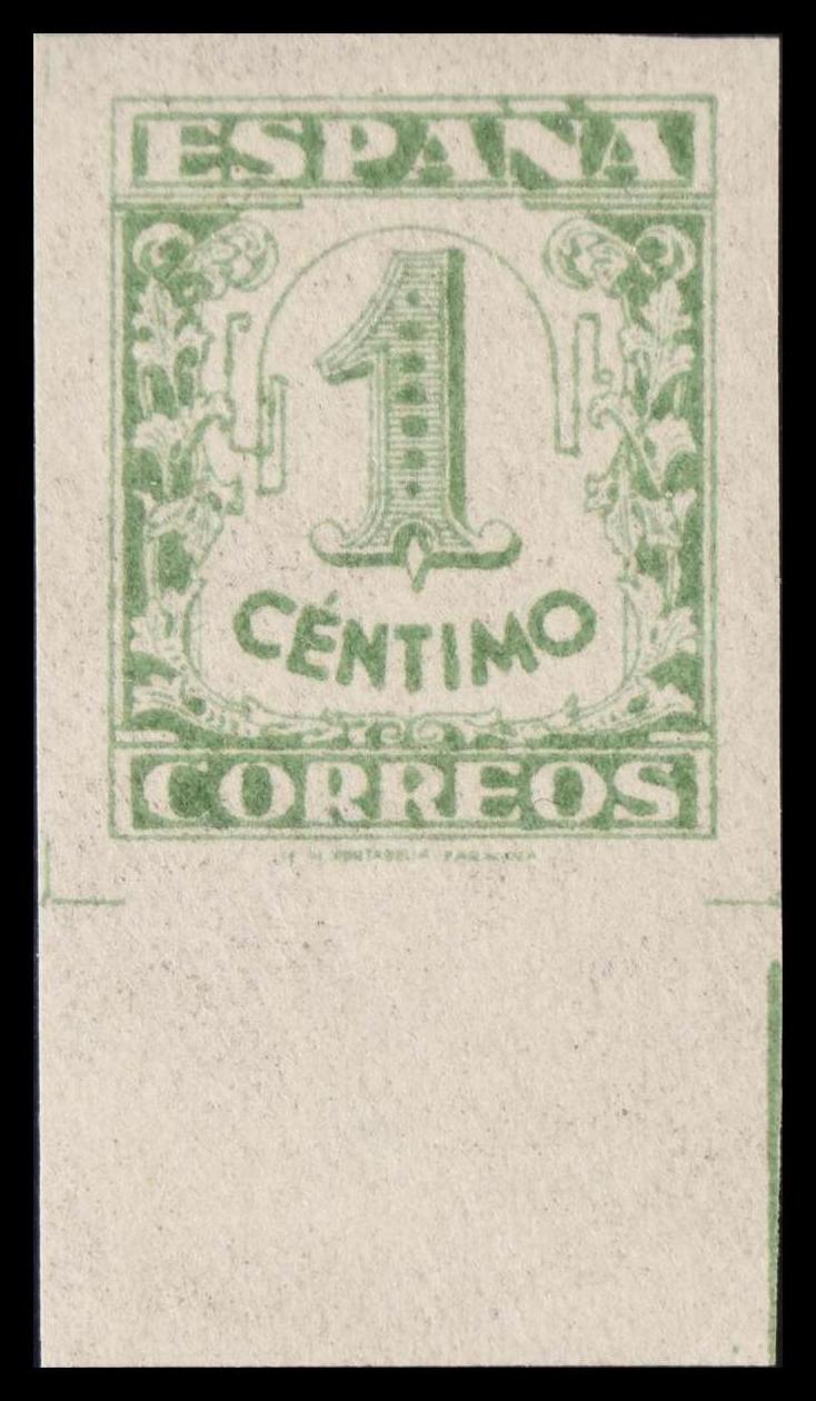 ★★ 802. 1937. 1 cts verde, borde de hoja. MAGNIFICO. Edifil 2020: 11 Euros