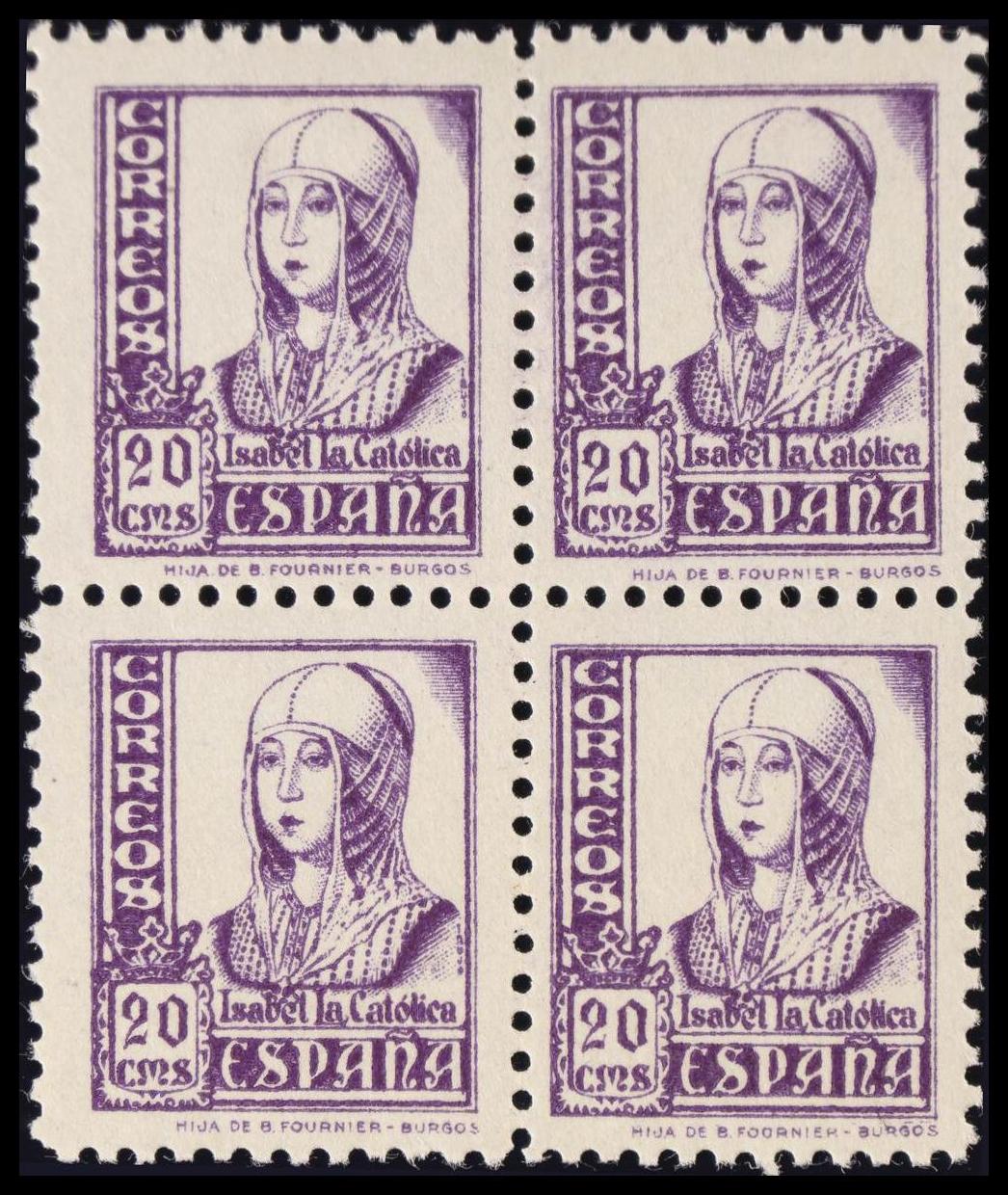 ★★ 821(4). 1937. 20 cts violeta, bloque de cuatro. MAGNIFICO. Edifil 2020: +3,2 Euros