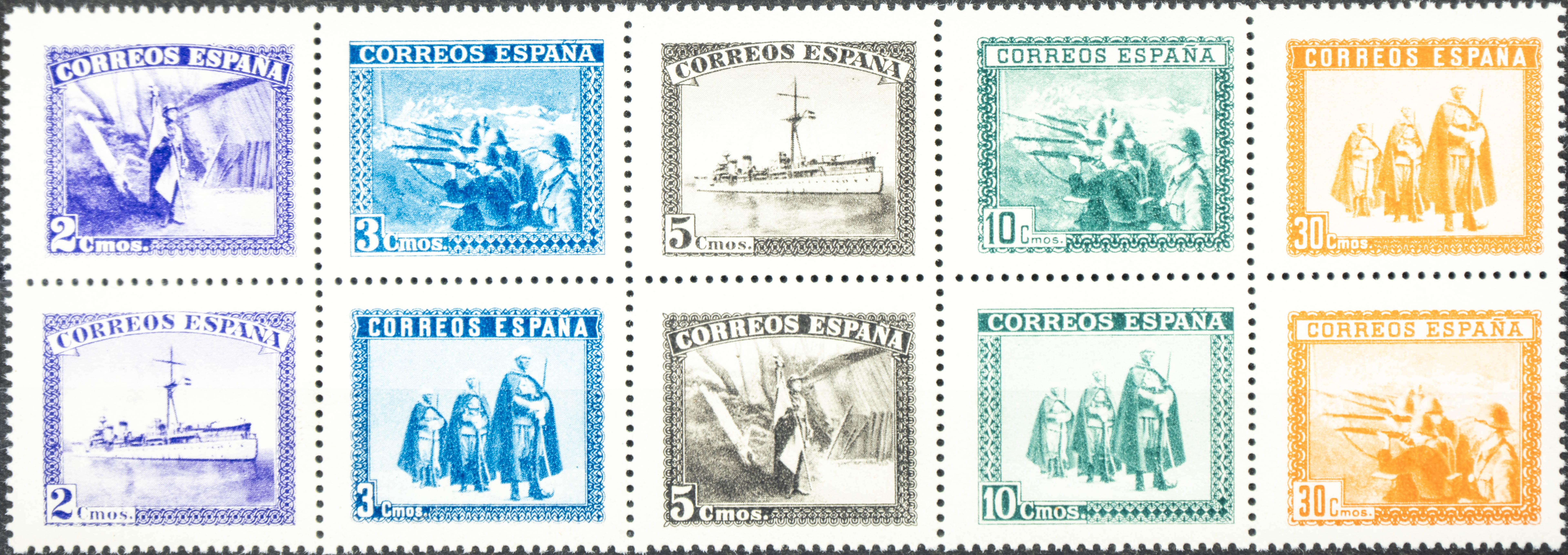 ★★ SH849. 1938. Serie completa, procedente de la hoja bloque. MAGNIFICA. Edifil 2020: 28 Euros