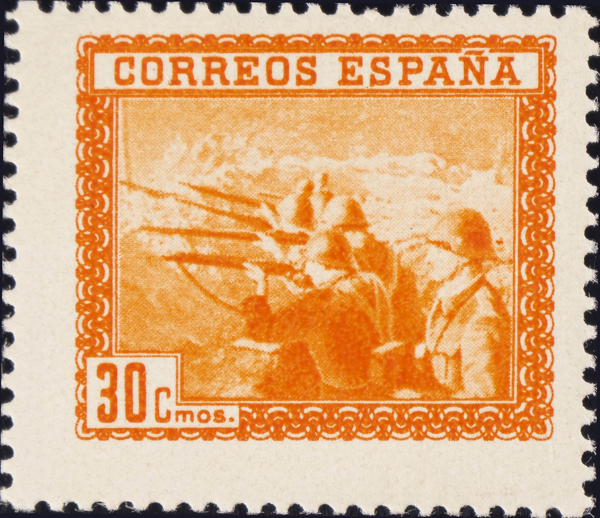 ★★ SH849K. 1938. 30 cts naranja, procedente de la hoja bloque. MAGNIFICO. Edifil 2015: 2,8 Euros