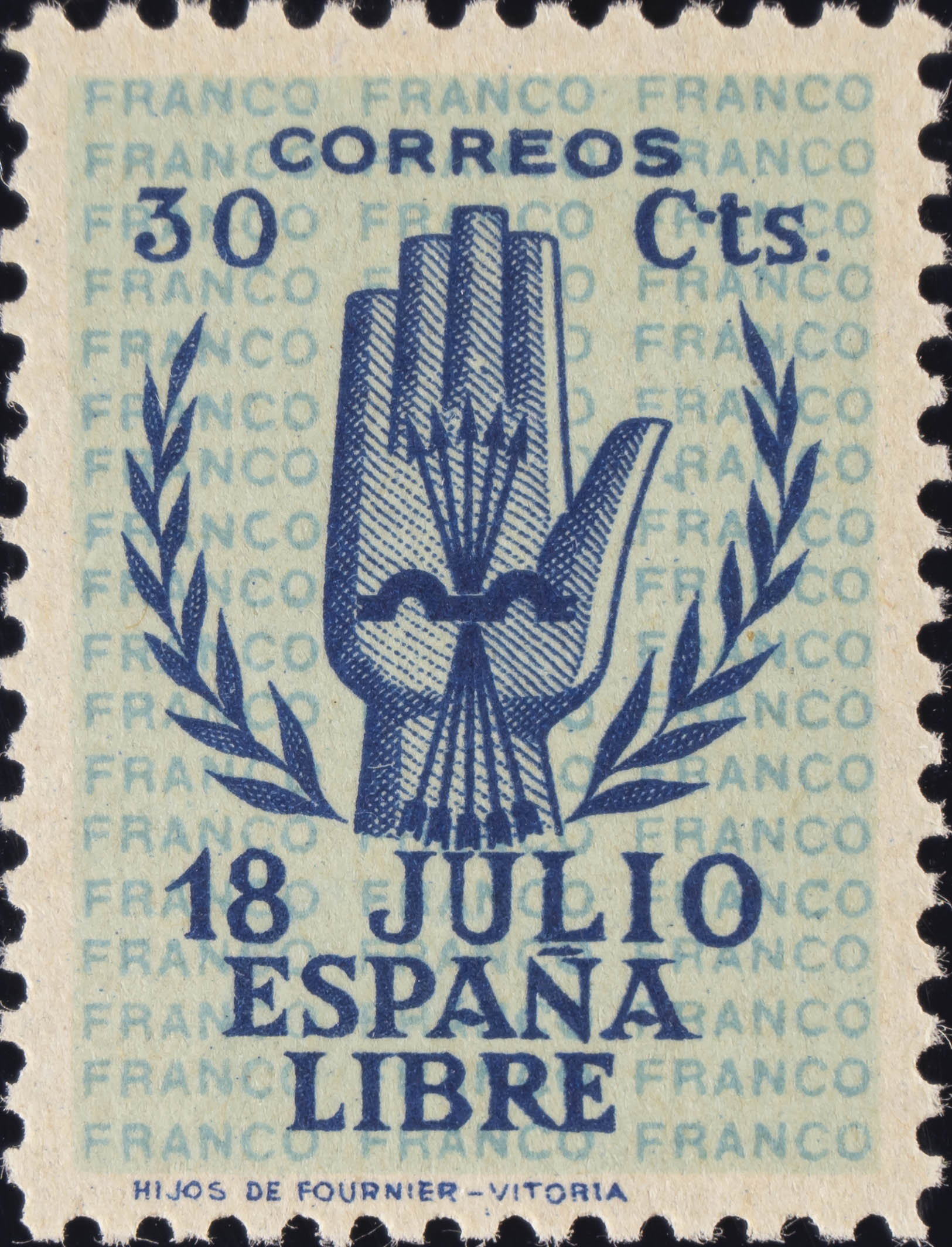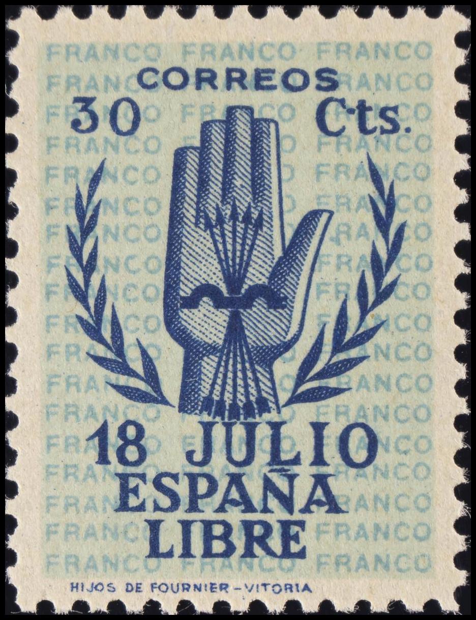 ★★ 853. 1938. 30 cts azul. MAGNIFICO. Edifil 2020: 5 Euros
