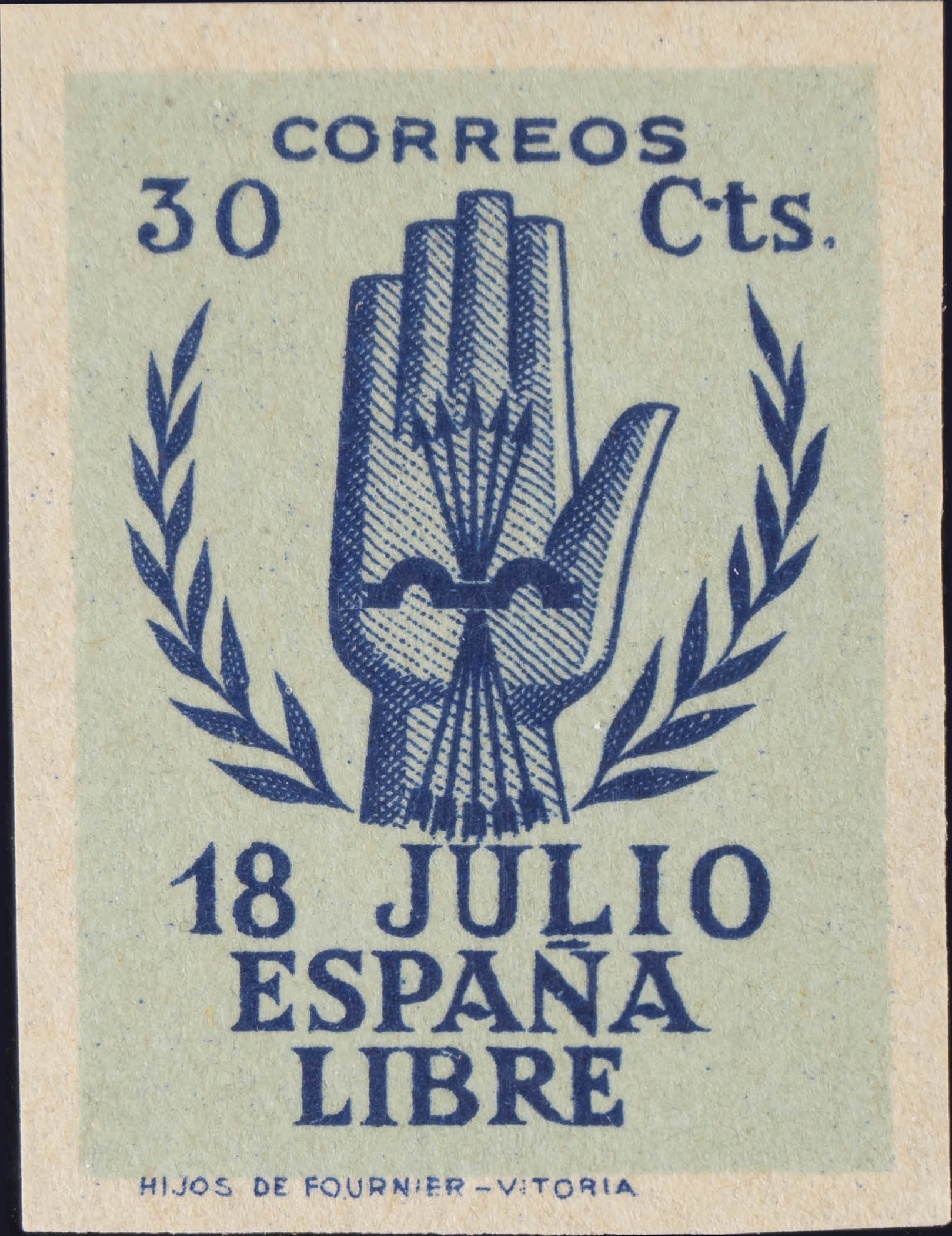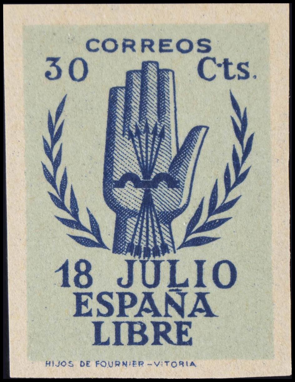 ★★ 853efs. 1938. 30 cts azul. Variedad SIN FONDO y SIN DENTAR. MAGNIFICO Y RARO. Edifil 2015: +505 Euros