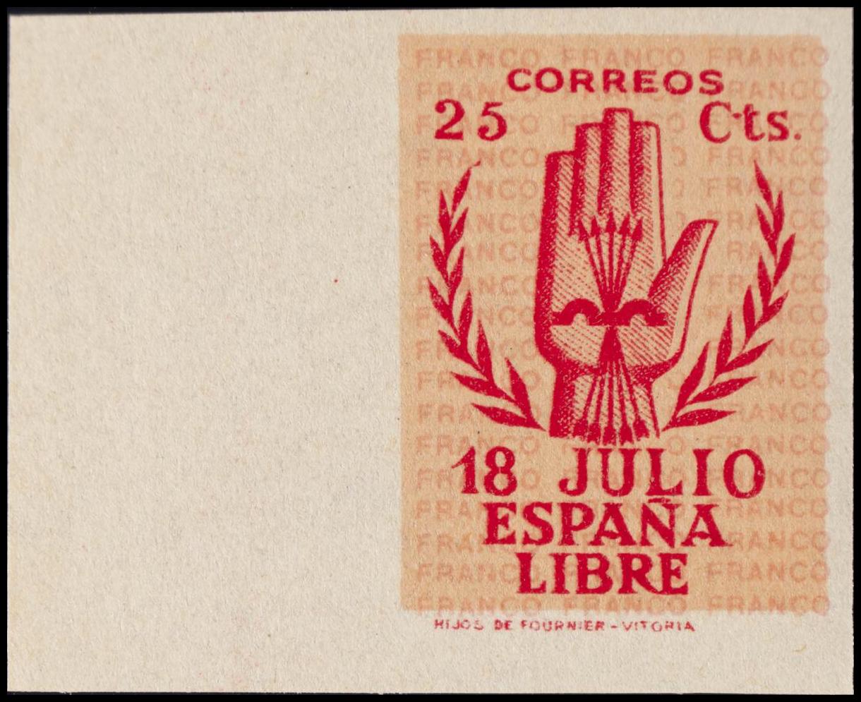 ★★ 852s(2). 1938. 25 cts carmÃn, borde de hoja. SIN DENTAR. MAGNIFICO. Edifil 2015: +660 Euros