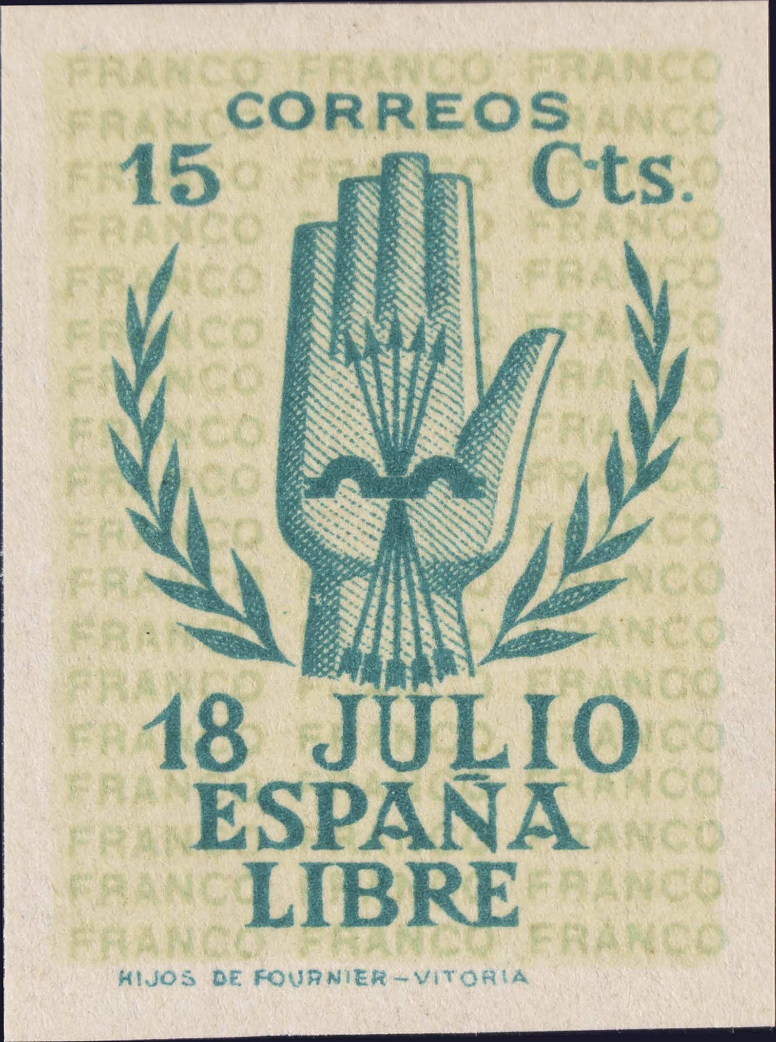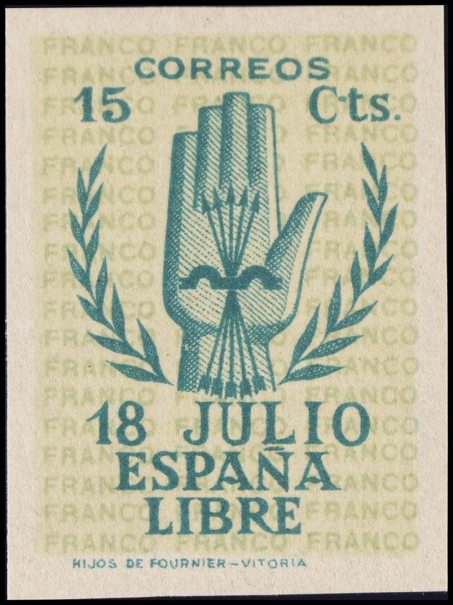 ★★ 851s. 1938. 15 cts verde. SIN DENTAR. MAGNIFICO. Edifil 2015: 330 Euros