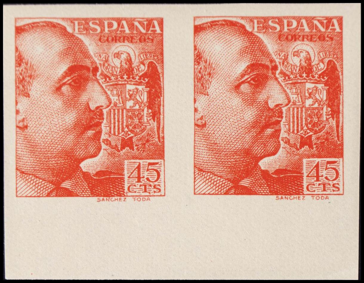 ★★ 871s(2). 1939. 45 cts rojo, pareja, borde de hoja. SIN DENTAR. MAGNIFICA. Edifil 2015: +22 Euros