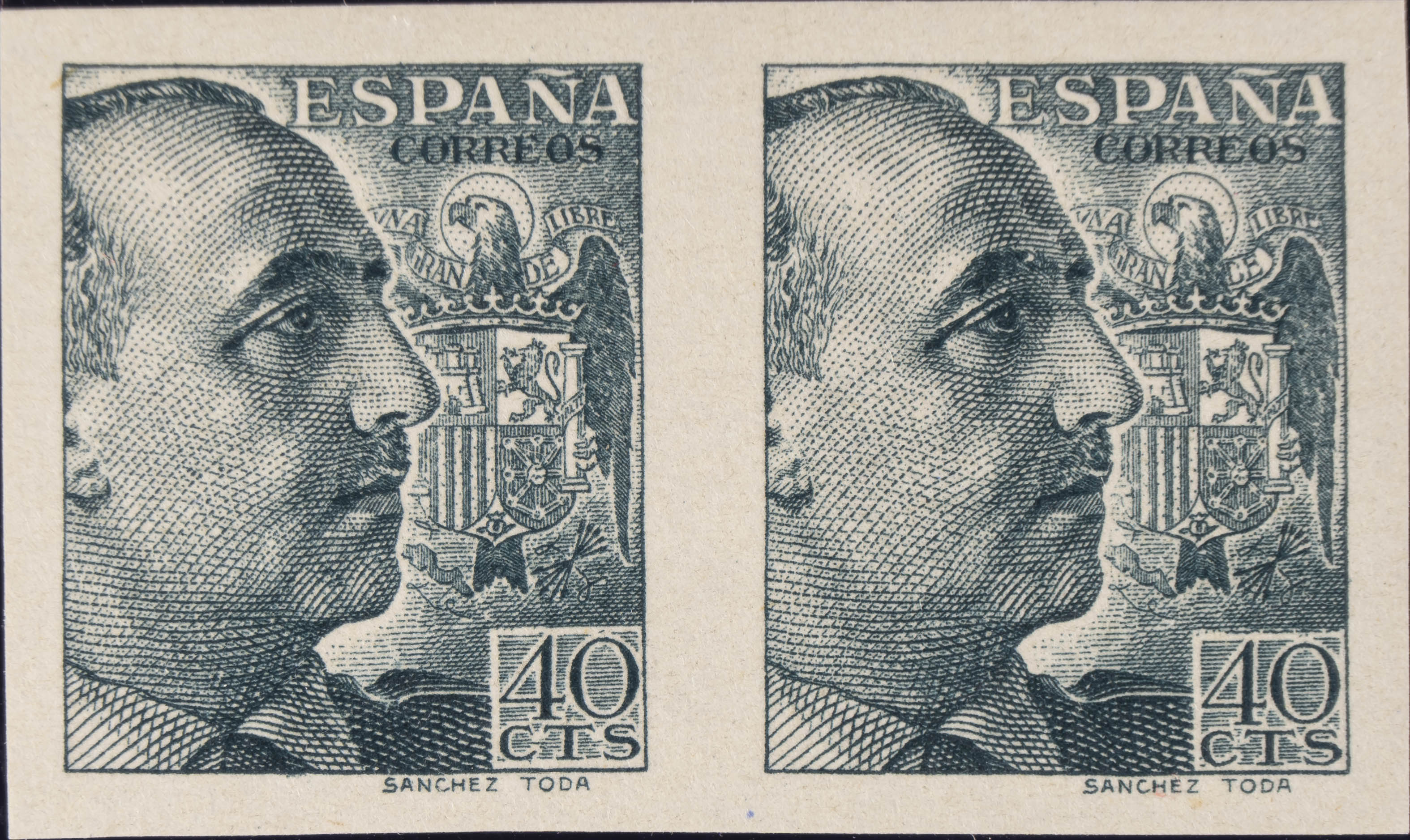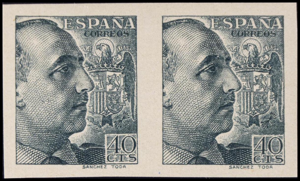 ★★ 870s(2). 1939. 40 cts verde gris, pareja. SIN DENTAR. MAGNIFICA. Edifil 2015: +22 Euros