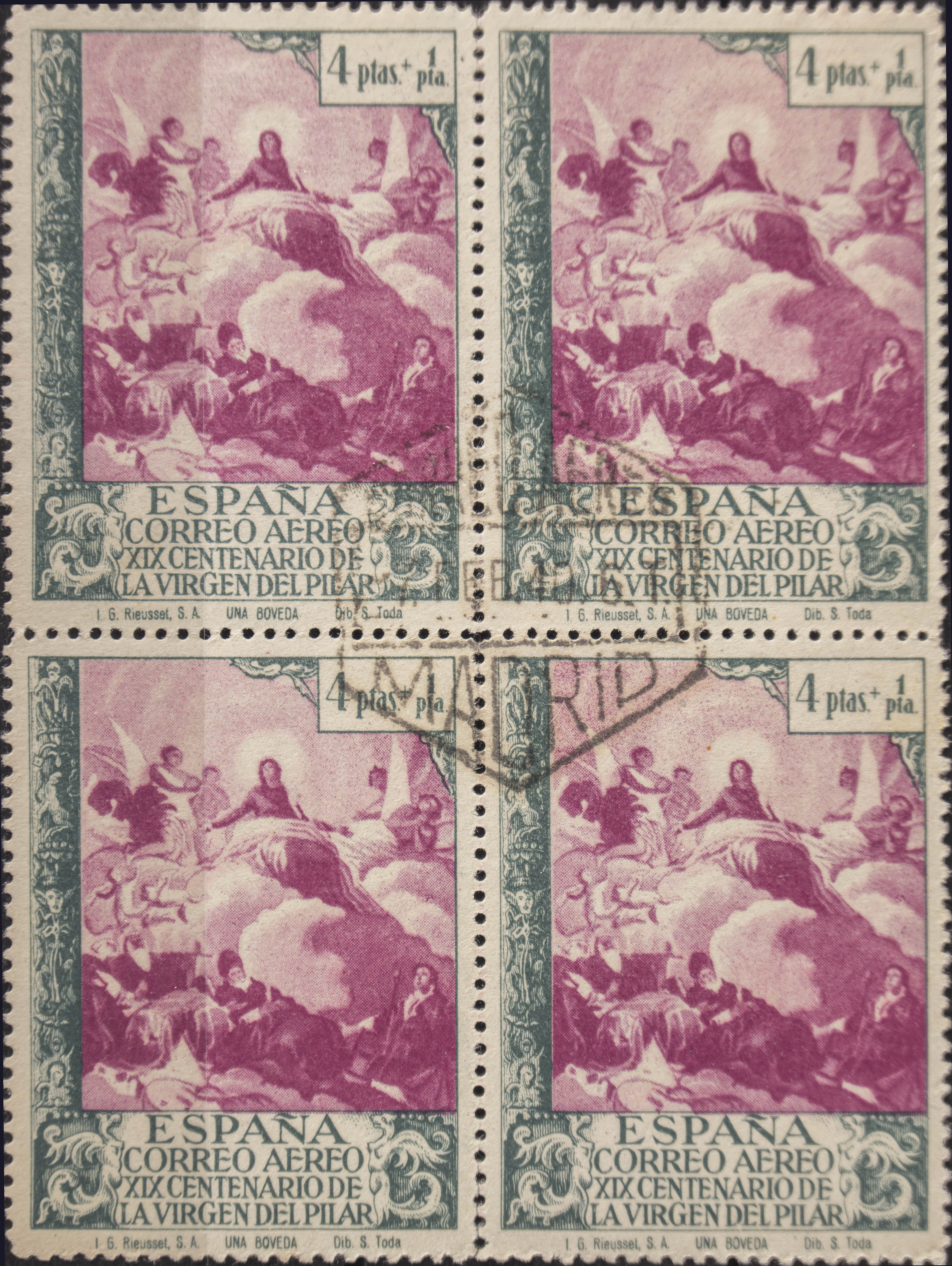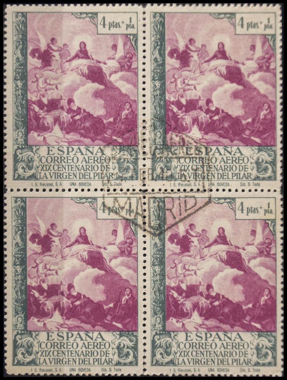 901(4). 1940. 4 pts+1 pts lila y verde, bloque de cuatro. MAGNIFICO. Edifil 2020: +52 Euros