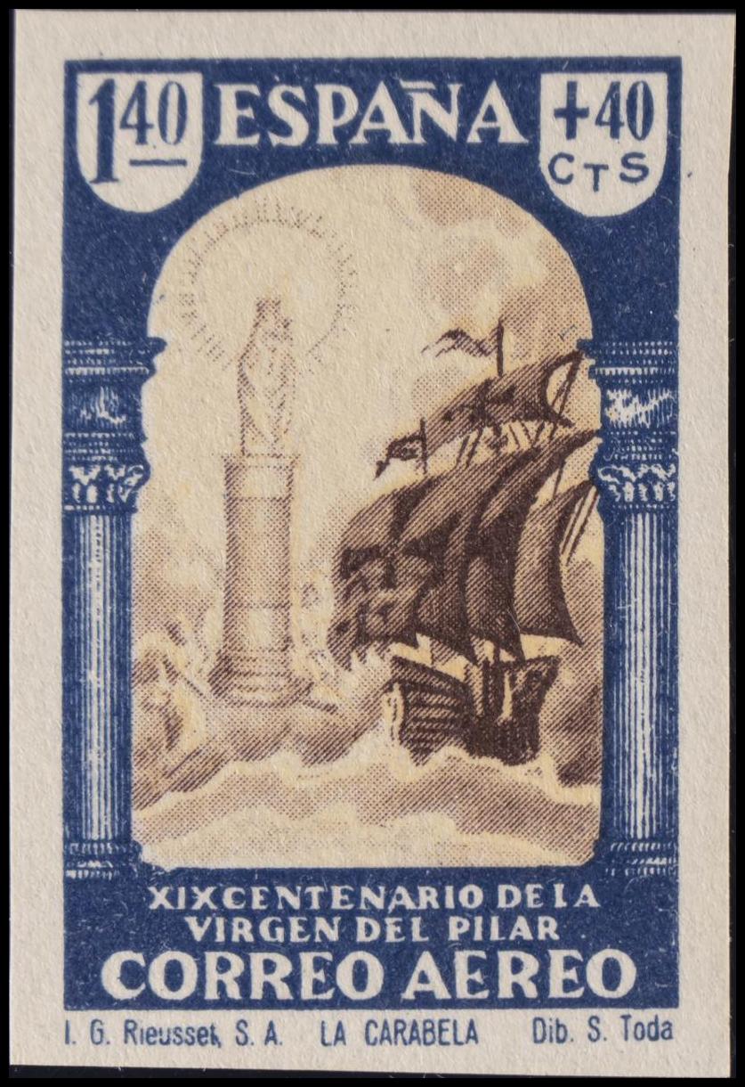 ★★ 910s. 1940. 1´40 pts+40 cts azul y sepia. SIN DENTAR. MAGNIFICO. Edifil 2015: 66,5 Euros