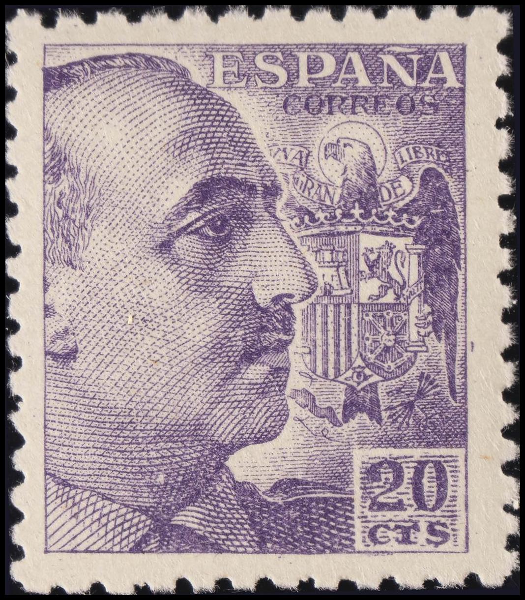 ★ 922. 1940. 20 cts violeta. MAGNIFICO.