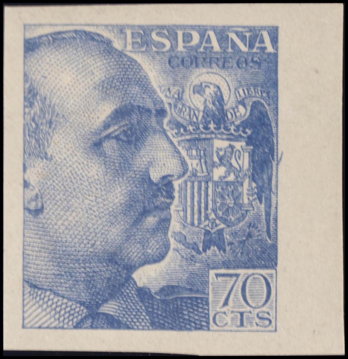 ★ 929s. 1940. 70 cts ultramar, borde de hoja. SIN DENTAR. MAGNIFICO. Edifil 2020: 82 Euros