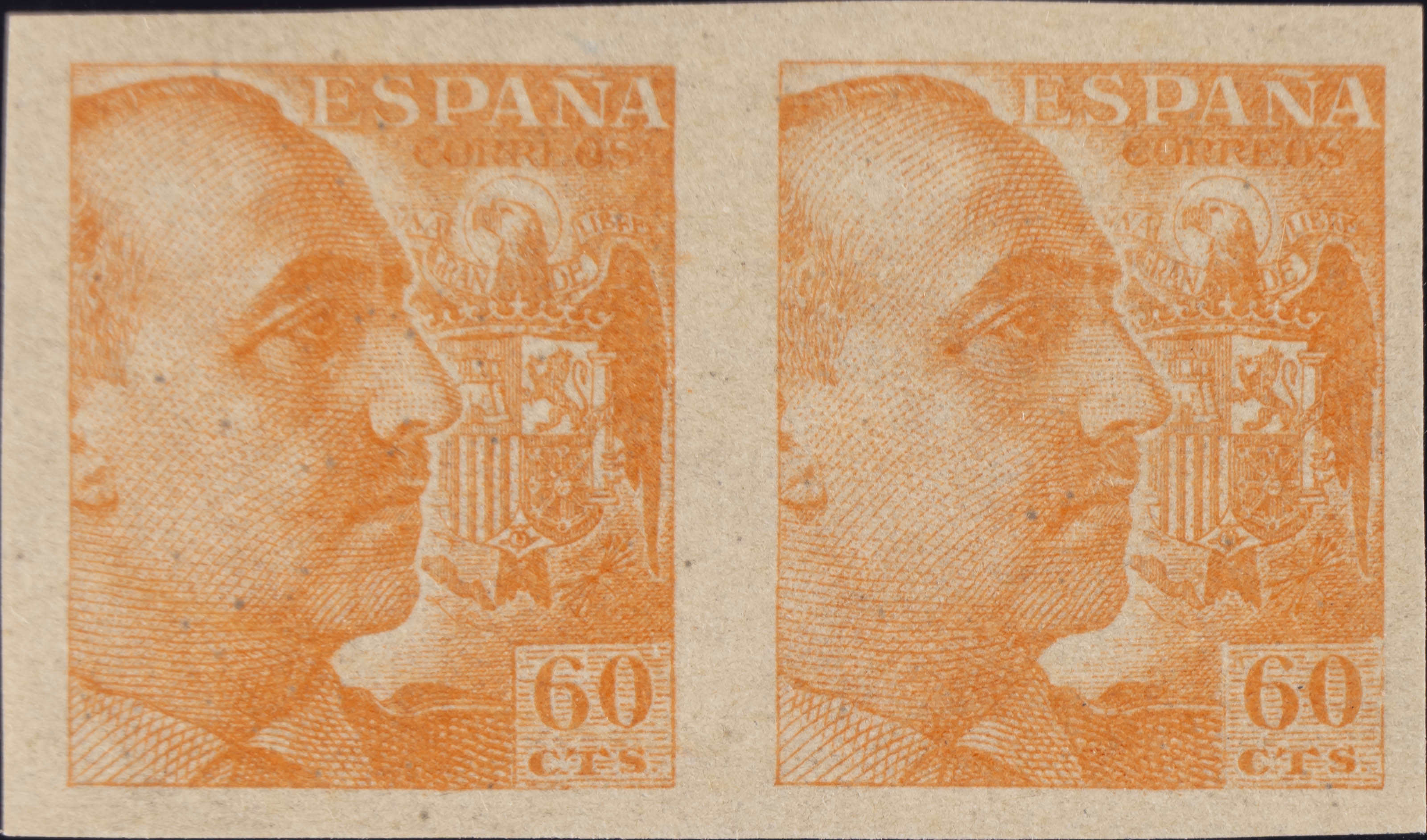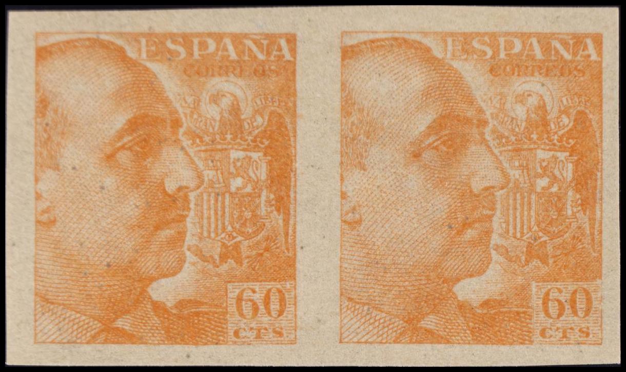 ★ 928s(2). 1940. 60 cts naranja, pareja. SIN DENTAR. MAGNIFICA. Edifil 2020: +620 Euros