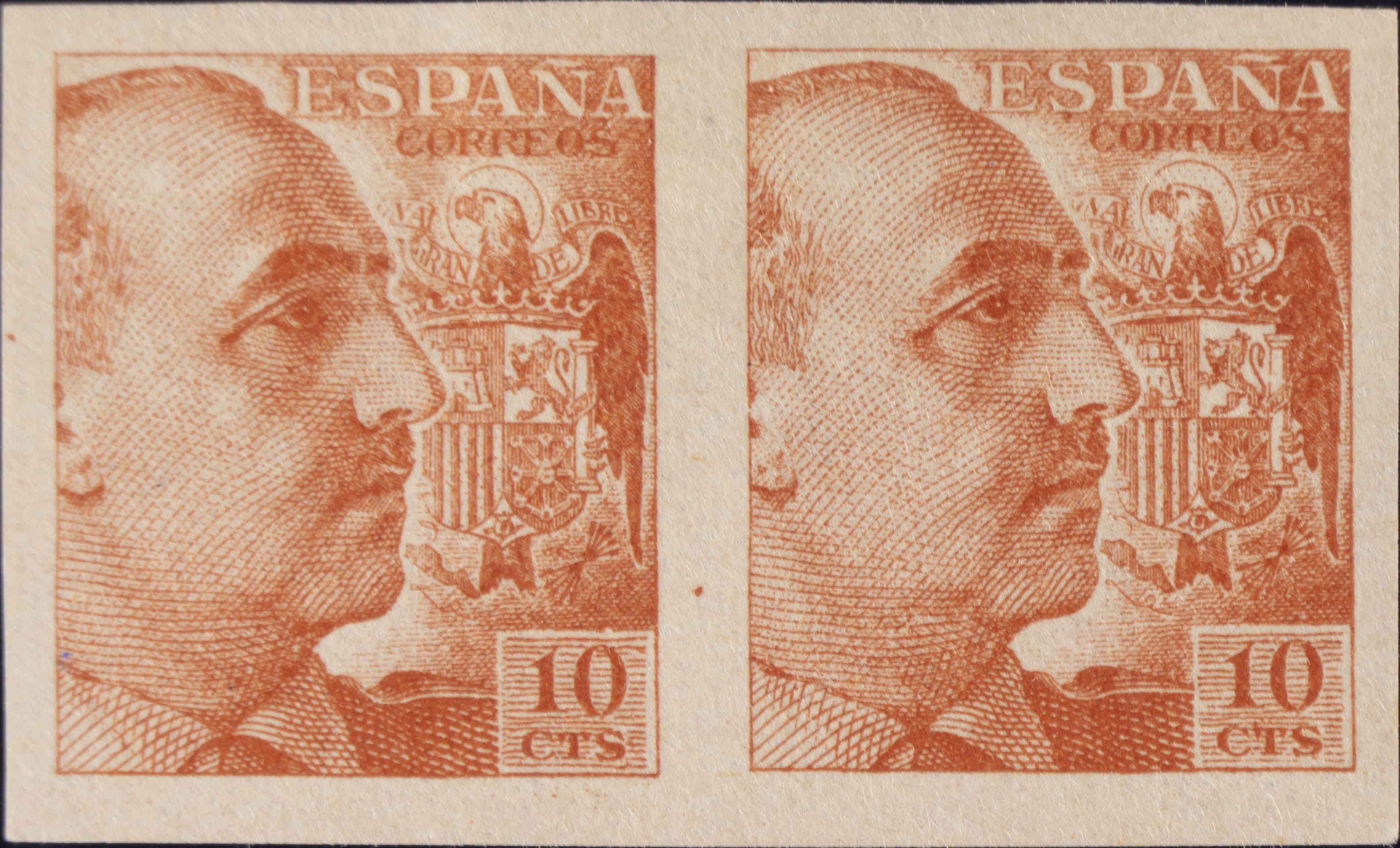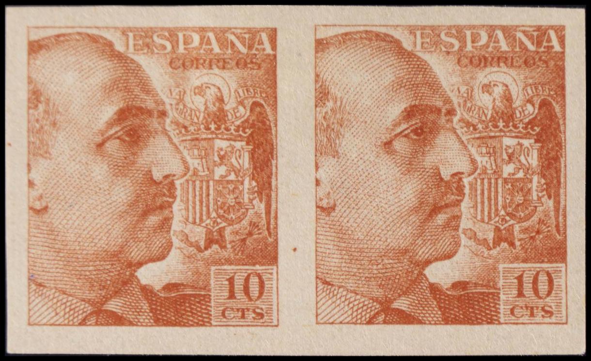 ★ 920s(2). 1940. 10 cts castaño naranja, pareja. SIN DENTAR. MAGNIFICA. Edifil 2020: +274 Euros