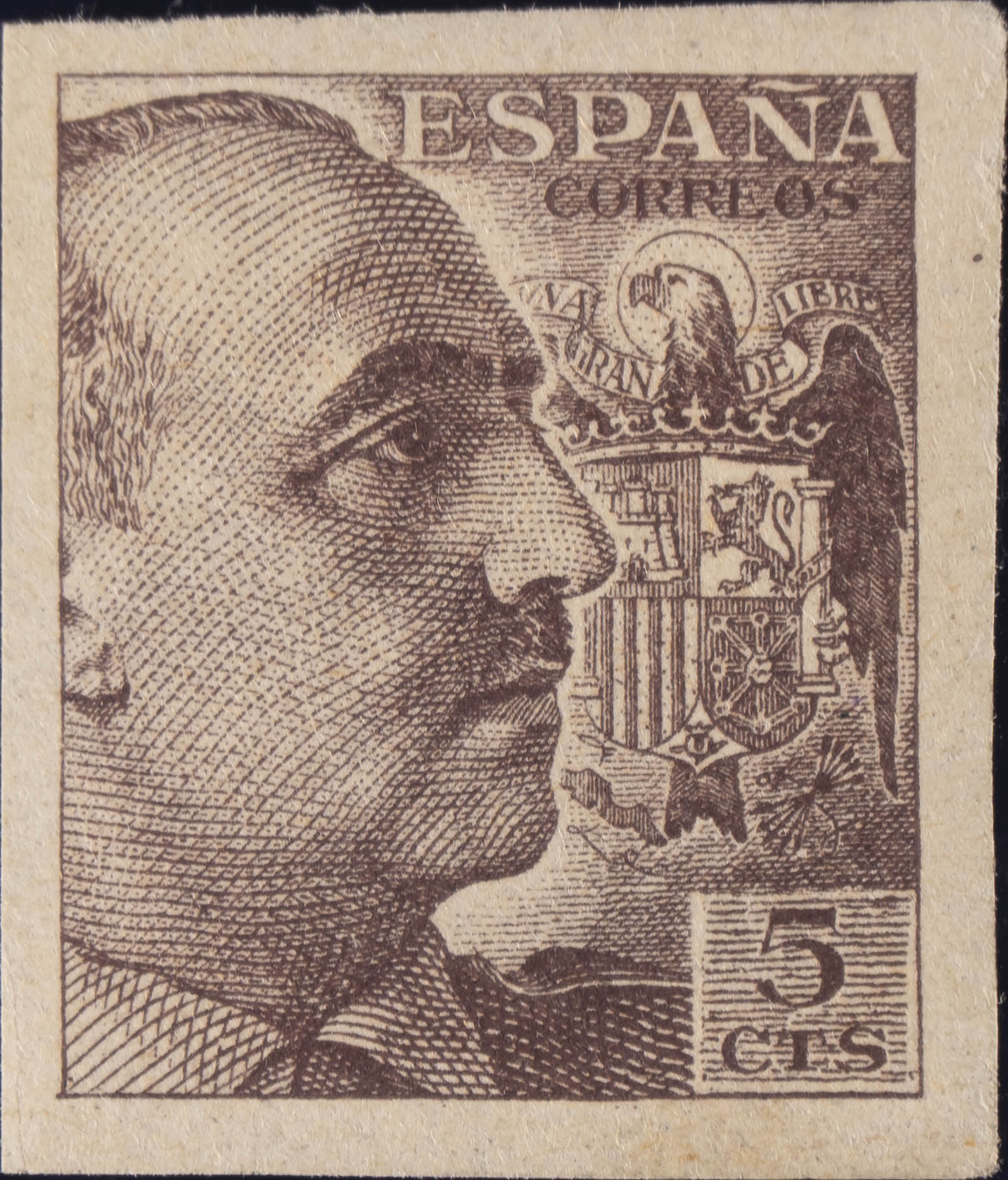 ★ 919s. 1940. 5 cts castaño lila. SIN DENTAR. MAGNIFICO. Edifil 2020: 137 Euros